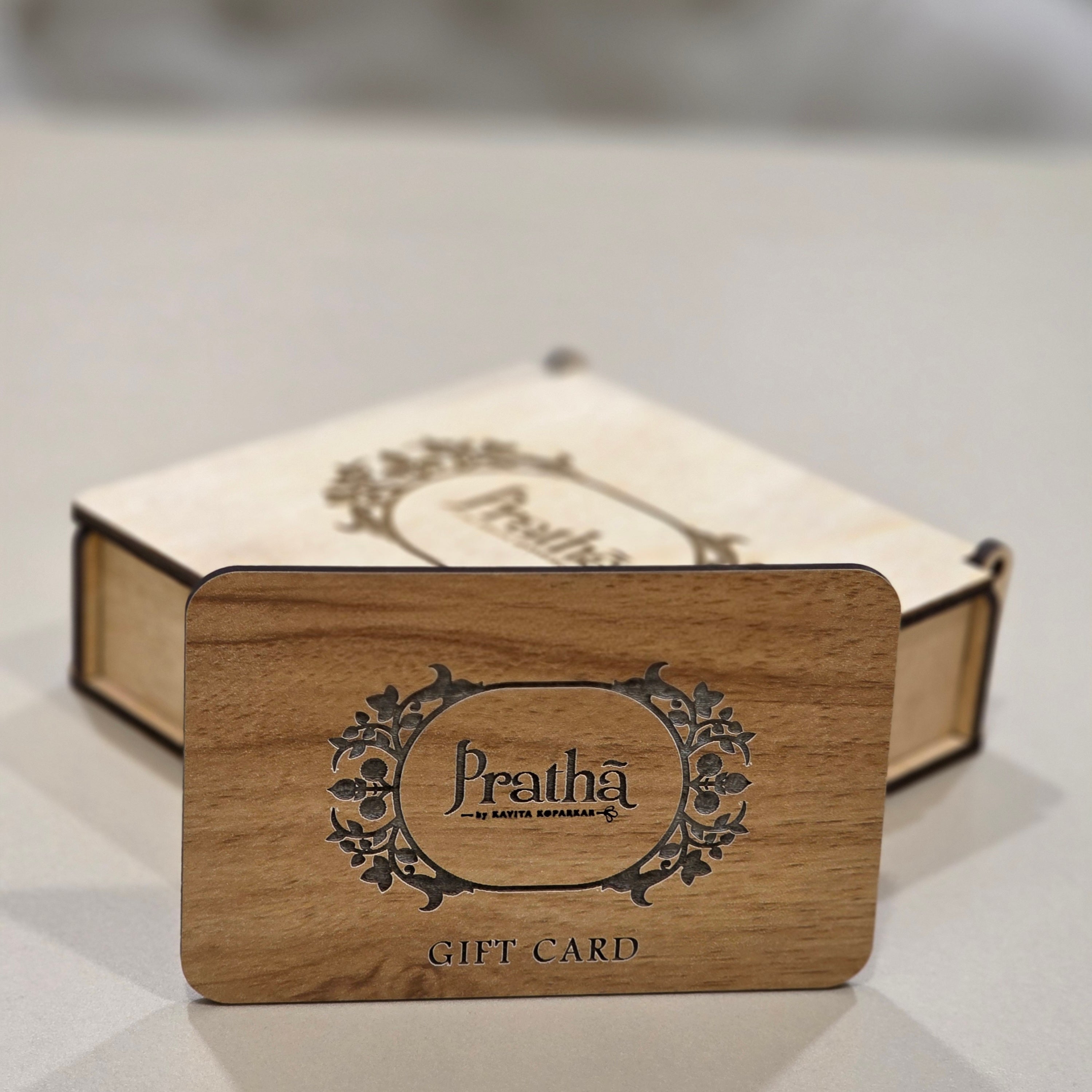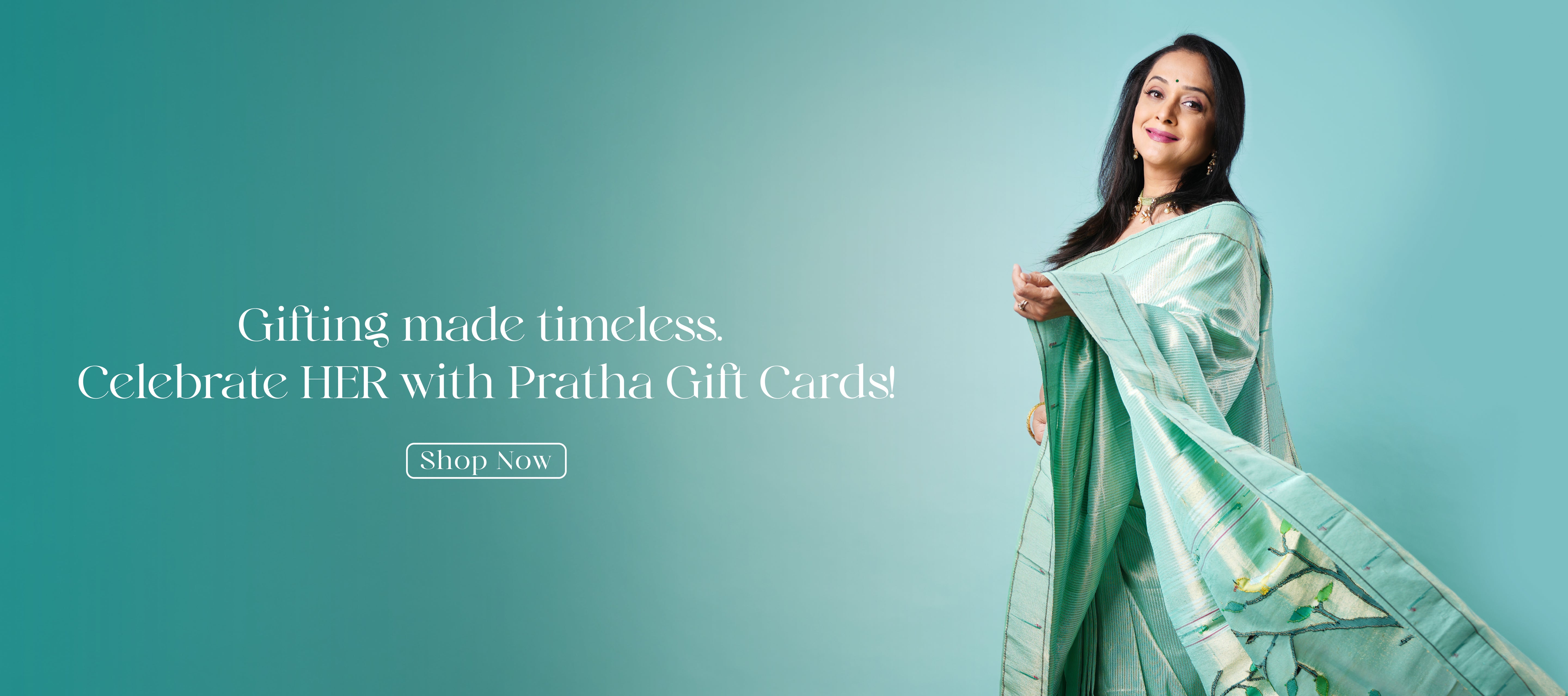 Experience the ultimate convenience with Pratha Sarees by Kavita Koparkar Gift Card. Our exclusive gift cards make the perfect gift for any occasion. Give the gift of choice and style with a wide selection of high-quality sarees to choose from. Elevate your gifting game with Pratha Sarees gift cards.