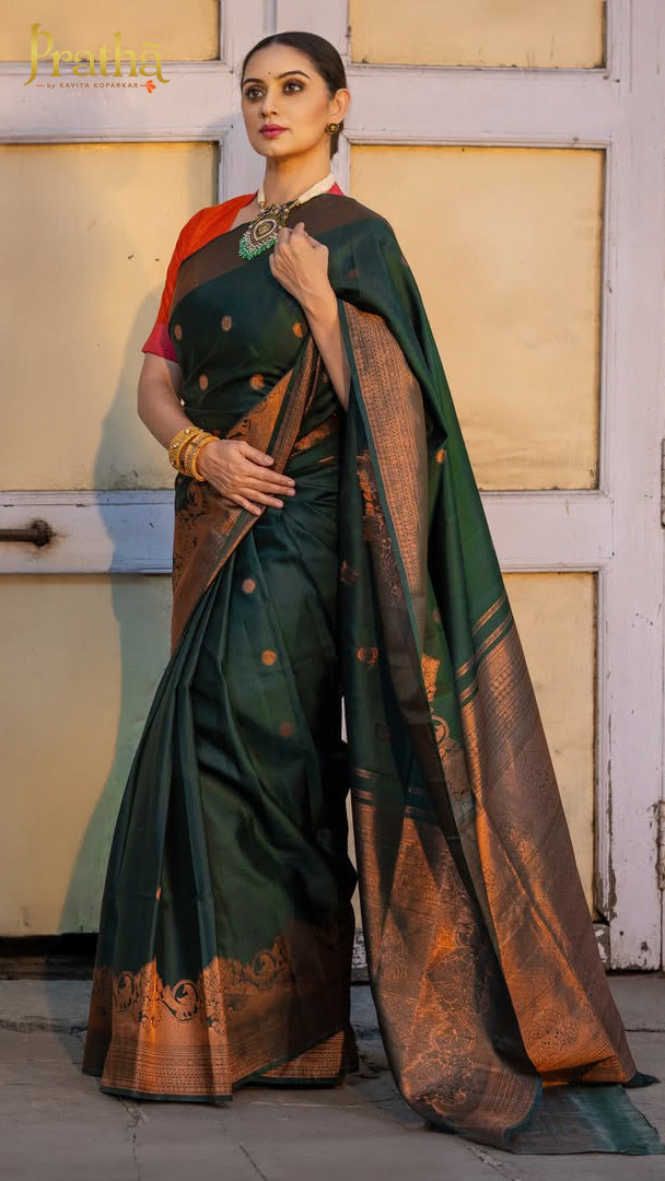 I, Kavita Koparkar, welcome you to my beautiful world of handloom weaves. I strive hard to bring to you the finest quality silk sarees sourced directly from weavers across India. Pratha is not just a shop or a website. It is an experience full of aesthetics, impeccable craftsmanship and a very high reliability quotient. I personally take immense efforts in the selection and curation process of Pratha sarees.