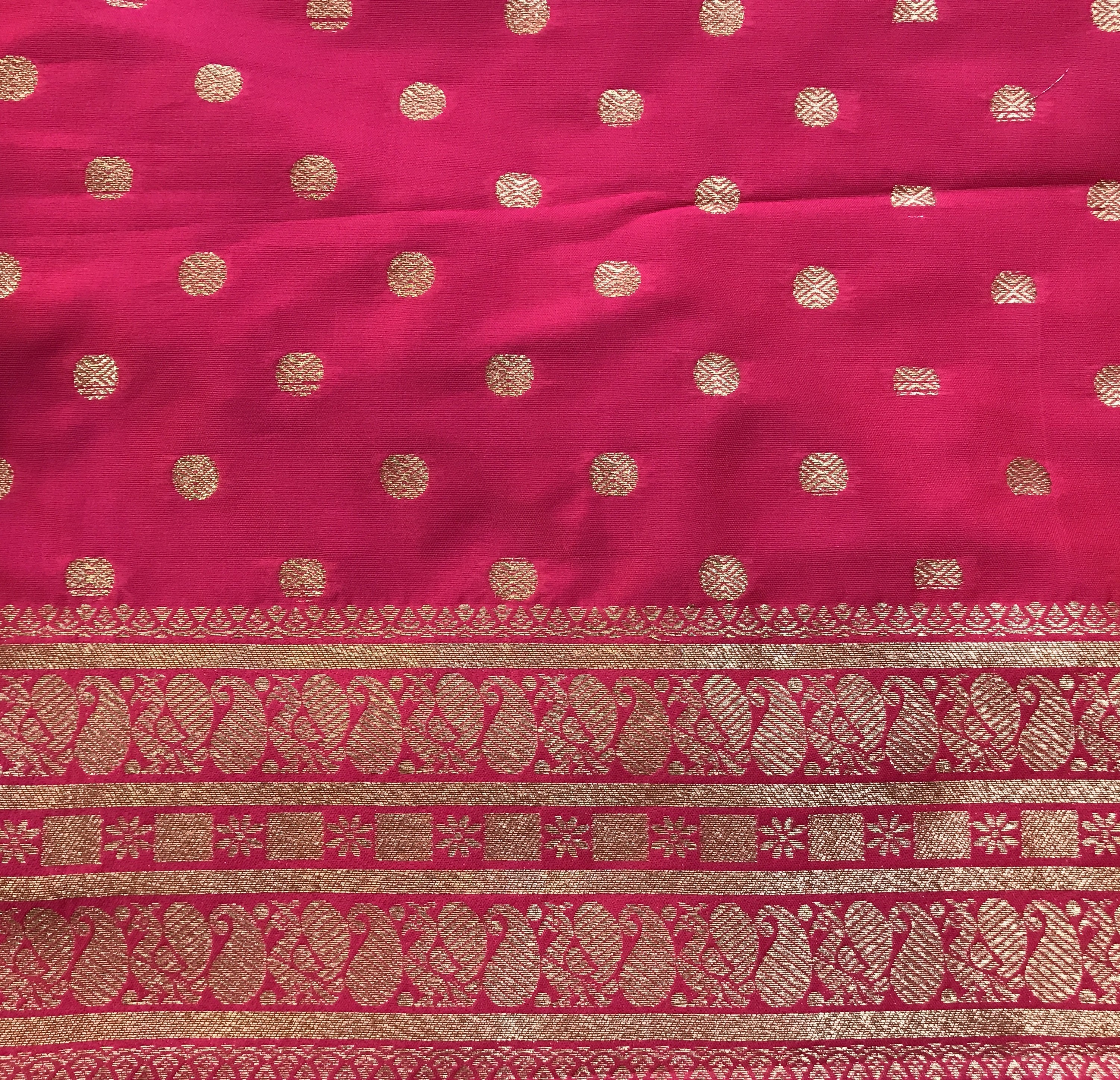 Blouse: Contrast (Pink Colour with small butti design and border)