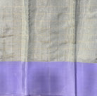 This elegant Kanjeevaram saree radiates understated sophistication with its serene silver-grey tone, beautifully balanced by a lavender border that adds a bold, classic contrast. The body is adorned with subtle vertical zari lines, lending a refined texture and graceful sheen to the weave. Enhancing its traditional charm, the pallu features delicately woven with soft zari accents, creating a harmonious blend of simplicity and heritage. Timeless and graceful, this Kanjeevaram is a versatile treasure, perfect for both festive occasions and elegant gatherings.