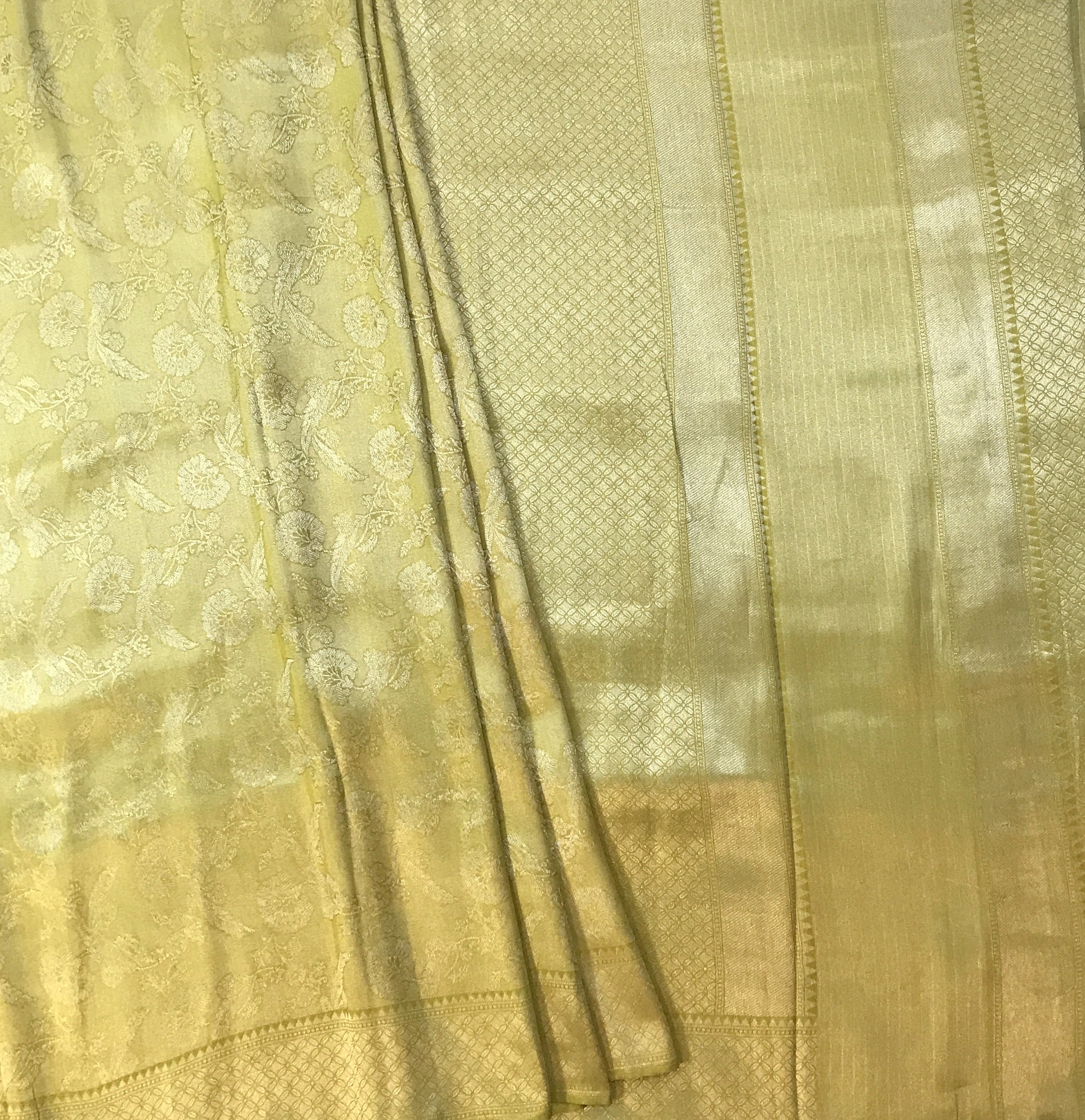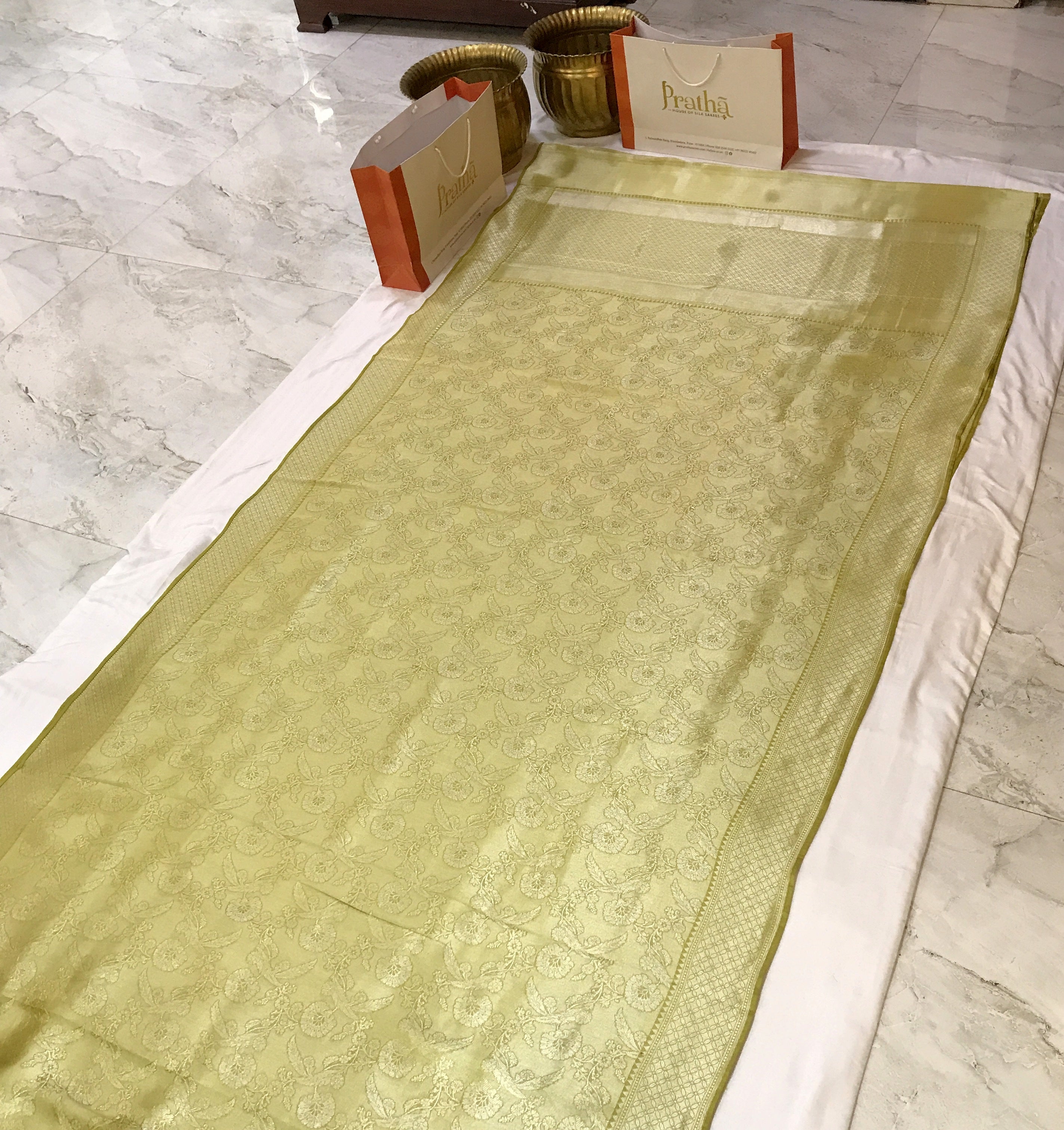 This is very beautiful lemon green with intricate floral (motifs ) designed traditional silver zari border, this is a perfect for every festive occasion. This pure silk Brocade Banarasi saree weaving floral design all over, fits in perfectly into the traditional façade. This kind of saree will look great on a bride or on any of your most special days as well as gifting purpose!