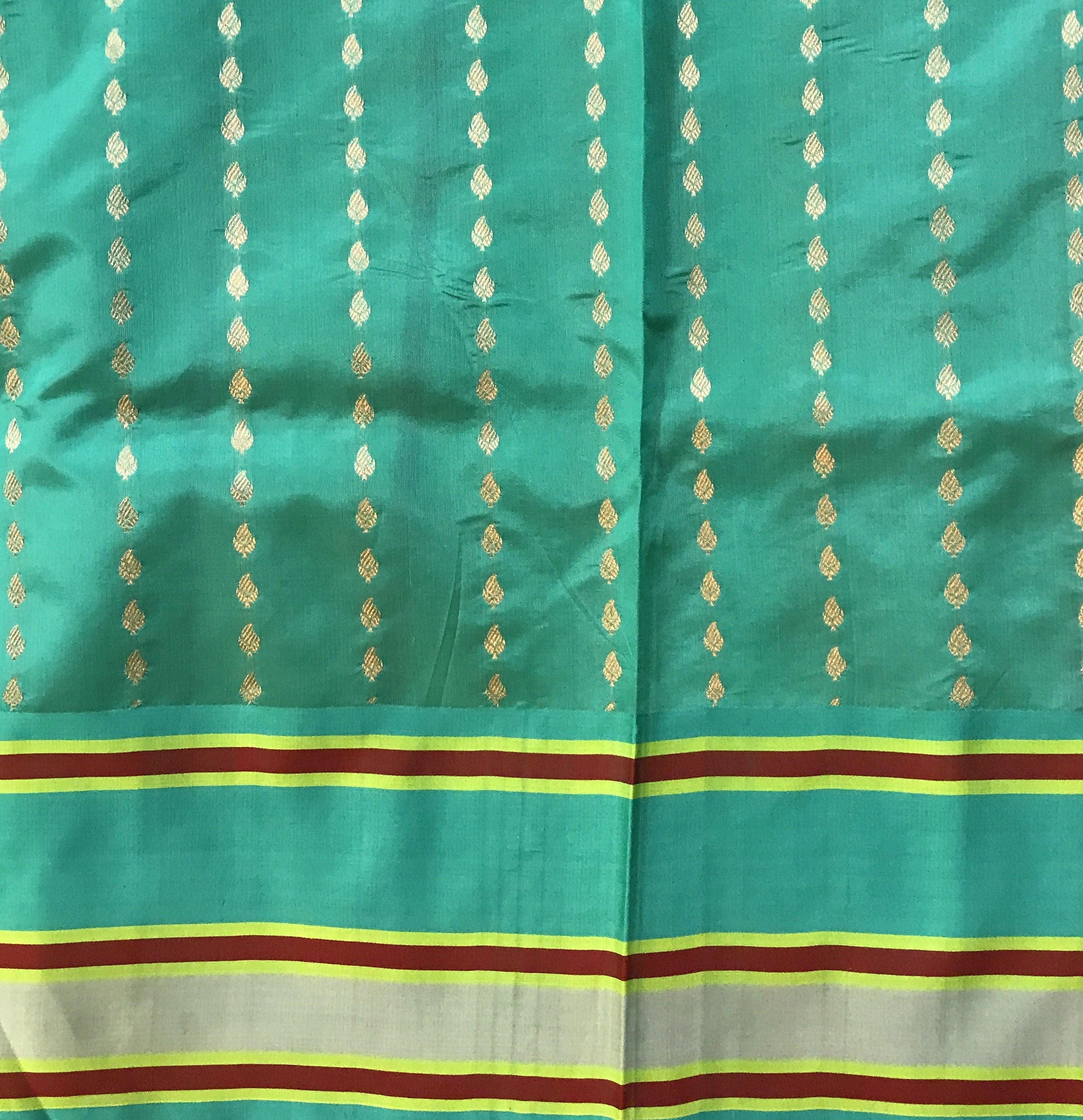Blouse Colour: Contrast ( Green with zari butti and zari border )