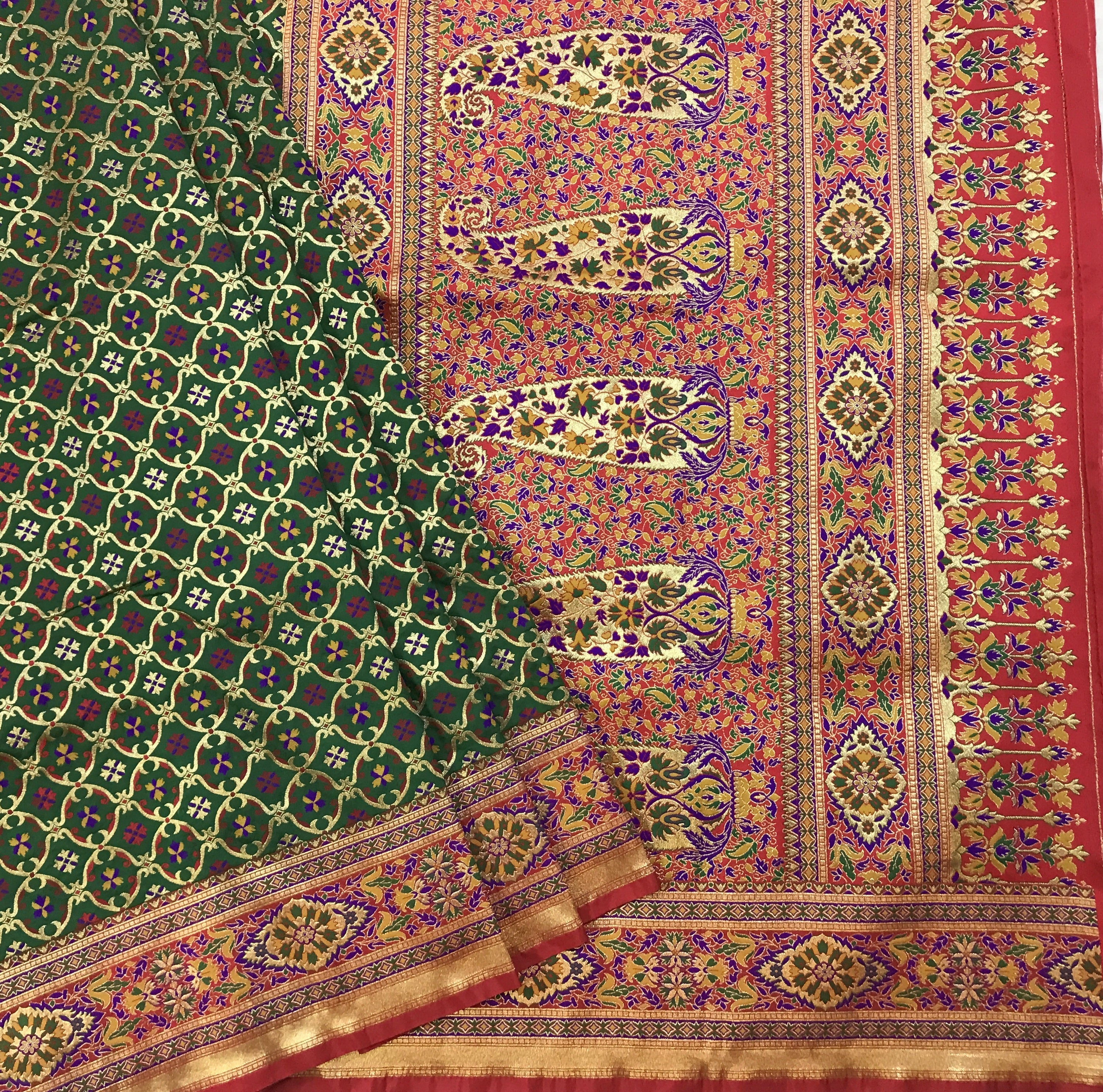A very beautiful combination of green power loom Banarasi saree with brocade design all over the weave, this saree is a stunner! The unique colour makes you stand out! We can wear this saree on different special occasions like weddings as well as for gifting purpose.