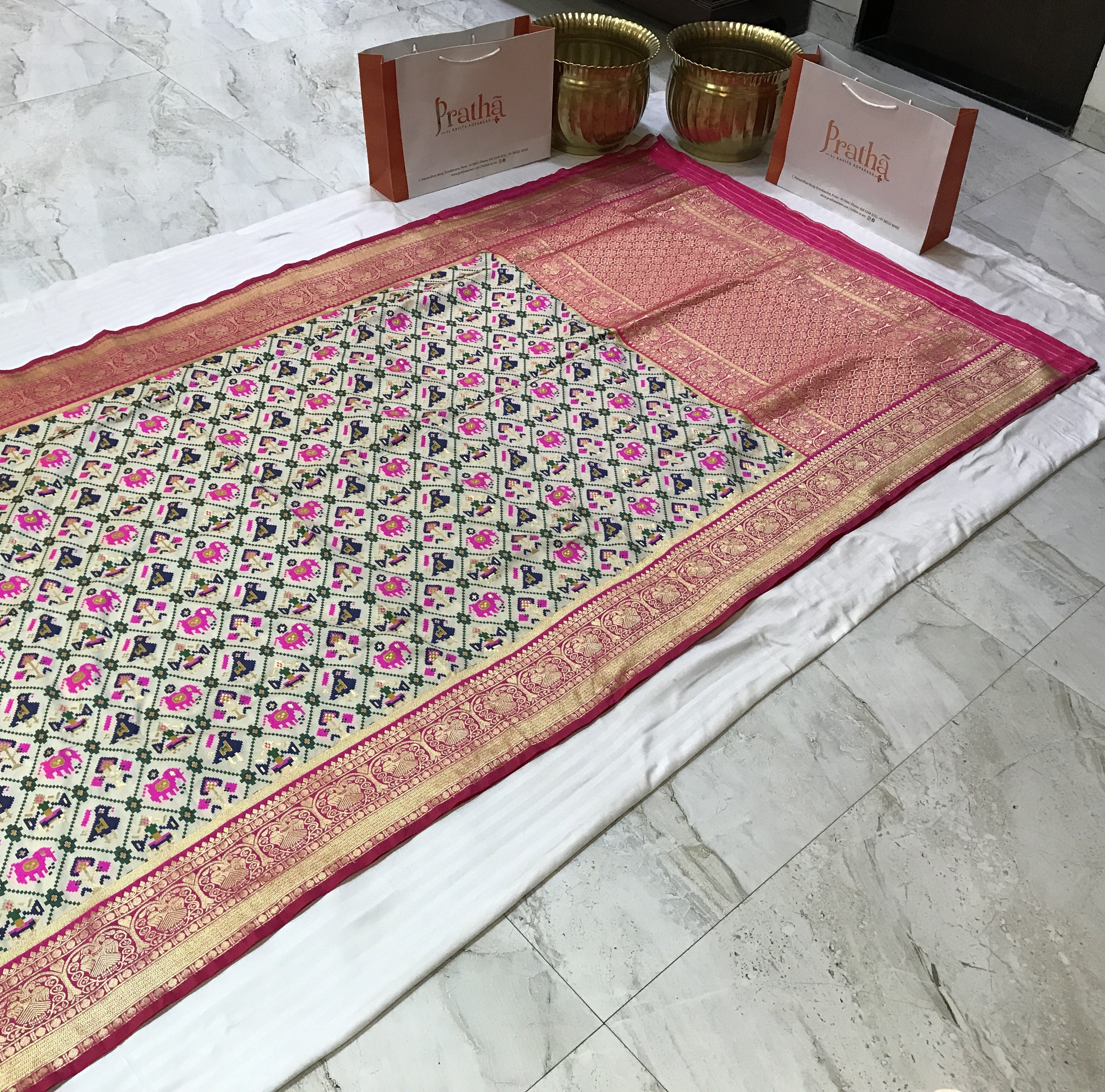 Note: Since these sarees are handmade, there may be slight variations in the design. We believe that these only add to each saree’s unique and inimitable character.