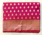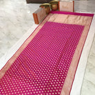 A beautiful shade of pink in the Banarasi style with brocade design, this saree is a stunner! The different colour makes you stand out! The bold but rich and intricate design of the small ( motifs ) in brocade is extremely outstanding. The zari colour- not too golden , not silver - makes this saree a true Banarasi !