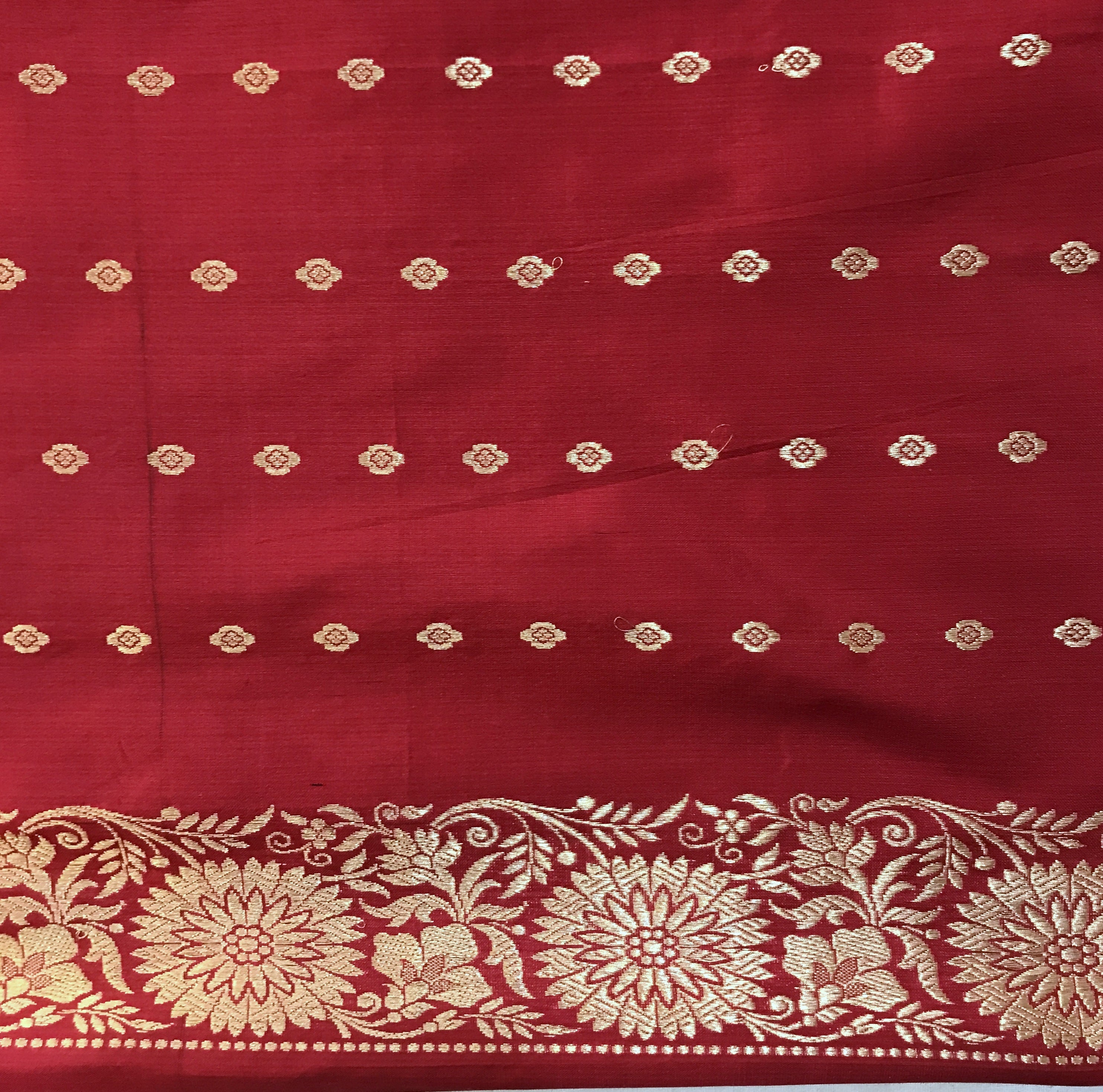 Blouse Colour: Contrast ( Red with butti design and zari border )