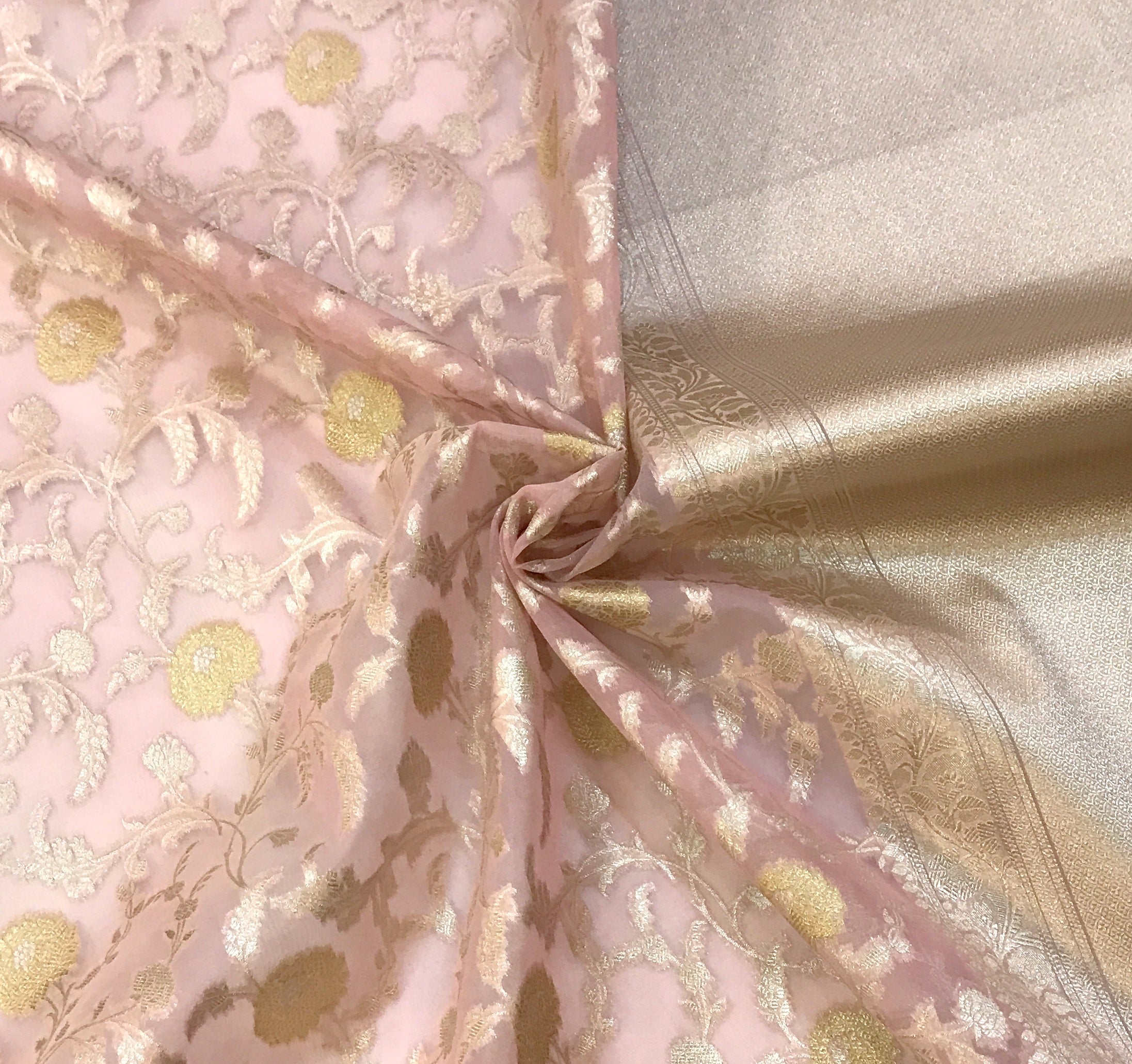 This Pink Organza brocade saree exudes elegance and grace with its intricate weaving and delicate fabric. Crafted with precision, it showcases a mesmerizing blend of traditional Banarasi motifs on lightweight Organza with brocade design, creating a stunning drape that captivates attention. This saree embodies timeless beauty, making it a perfect choice for special occasions where sophistication meets tradition in a seamless fusion in pink colour.