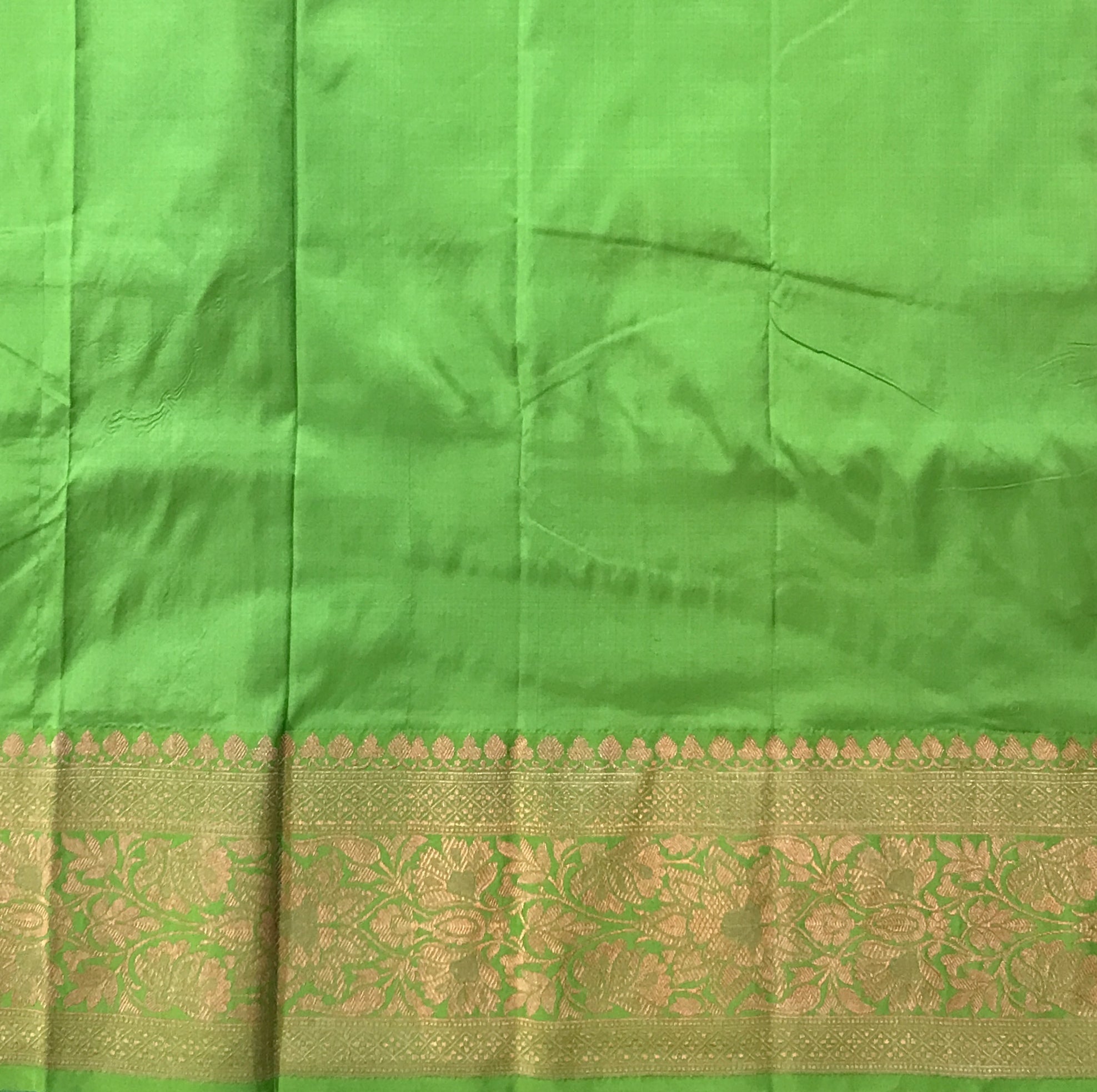 Blouse Colour: Contrast ( Parrot green withi intricate design zari border )