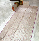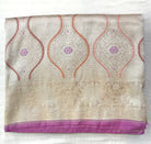 A beautiful shade in beige-pink the Banarasi style with brocade design, this saree is a stunner! The different colour makes you stand out! The bold but rich and intricate design of the motifs in brocade is extremely outstanding. The zari colour- not too golden , not silver - makes this saree a true Banarasi !