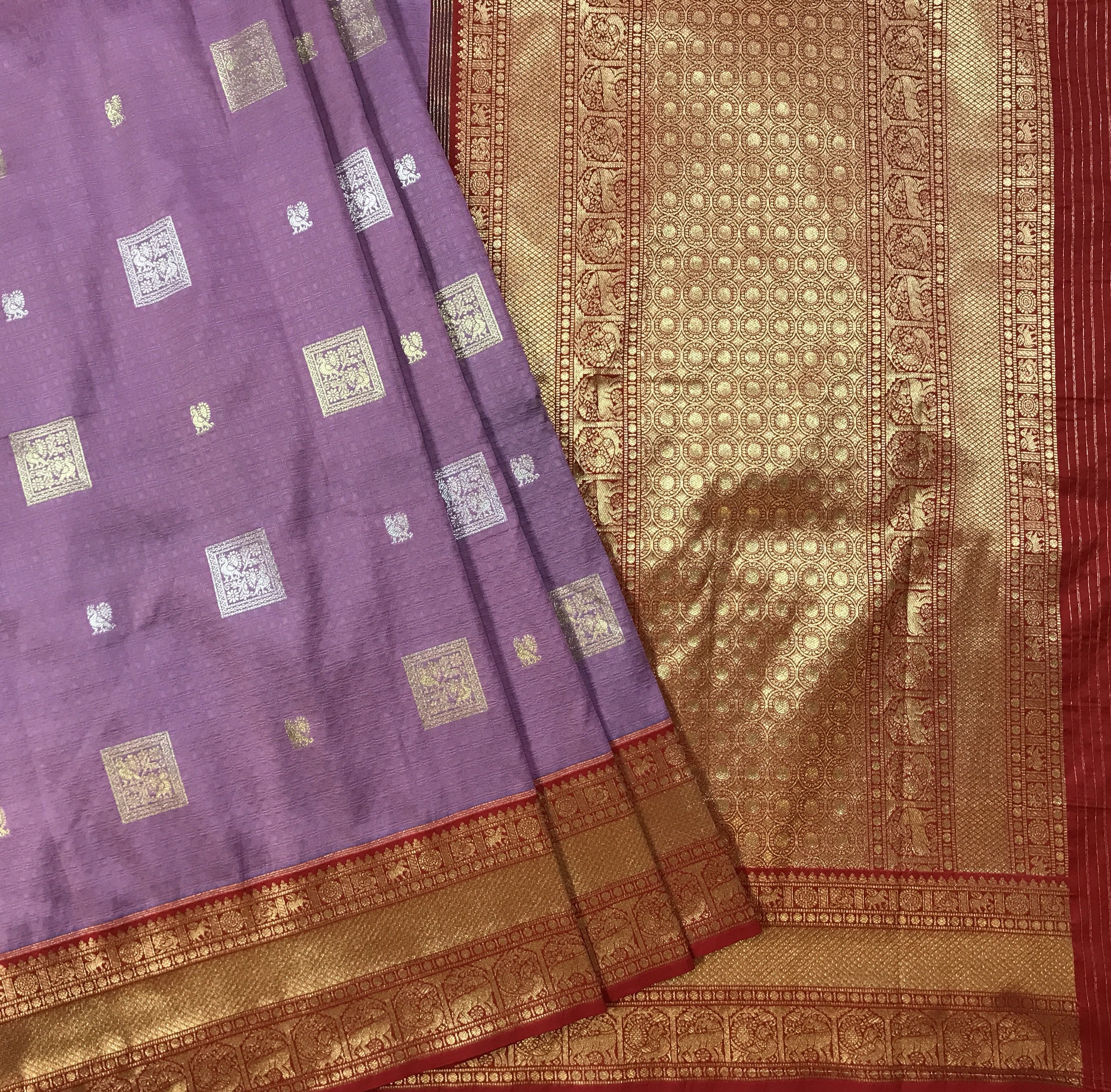 A resplendent blend of tradition and elegance, this saree embodies opulence in every drape. Crafted from pure silk,peacock motifs intricately woven with golden and silver zari, it marries the grandeur of Kanjeevaram with the allure of Banarasi. Adorned with small and large butta motifs, it exudes timeless charm and grace, making it a quintessential ensemble for any celebratory occasion.