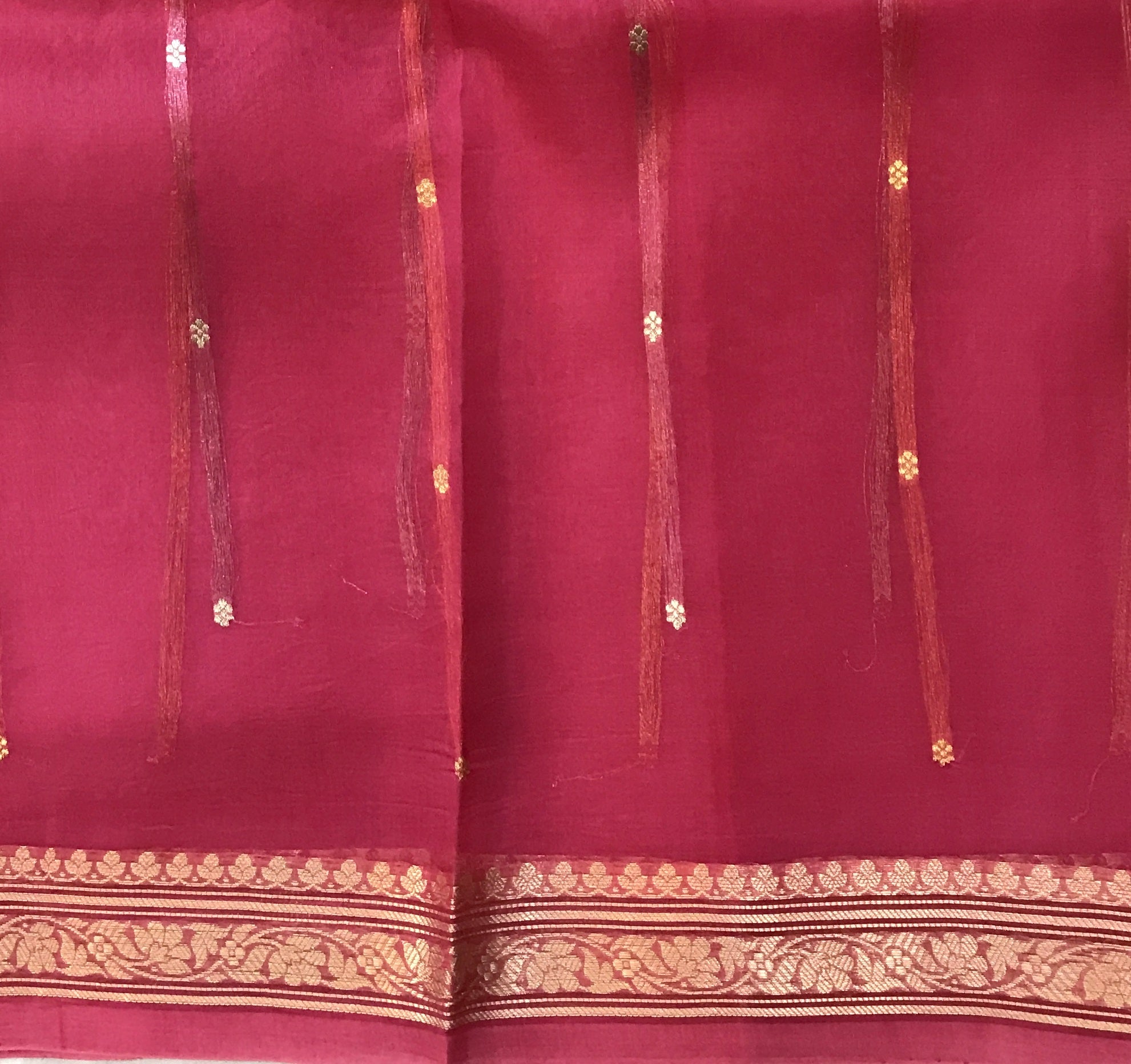 Blouse: Contrast (Raspberry Pink with Zari Border)