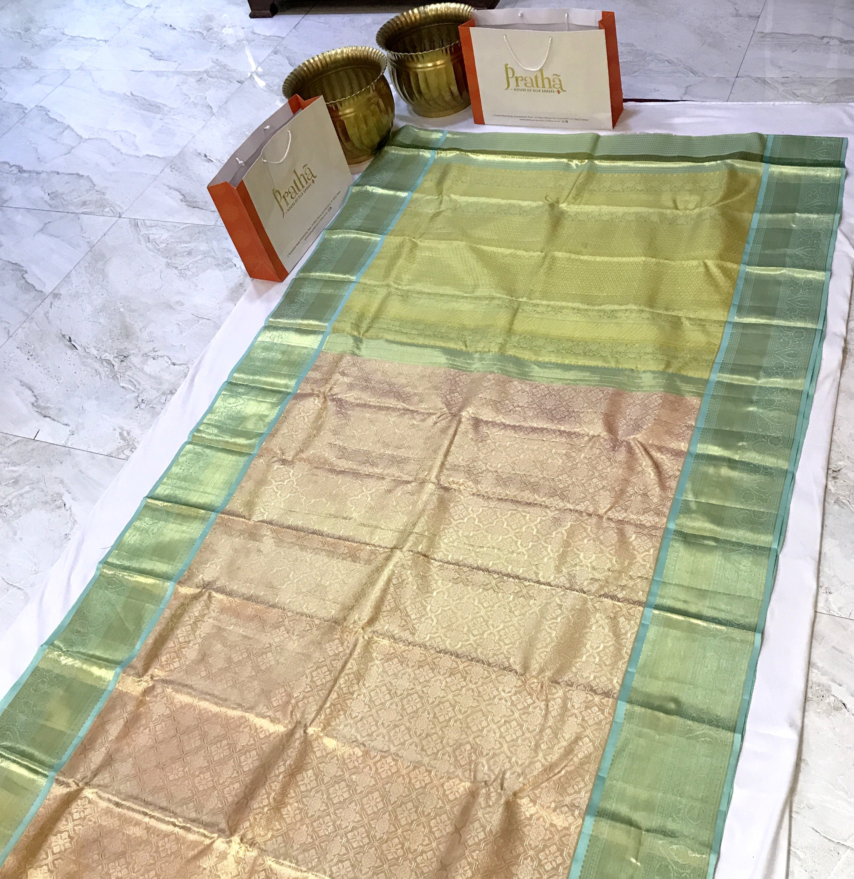 Blouse Colour : Contrast ( Green Colour with brocade design and zari border )