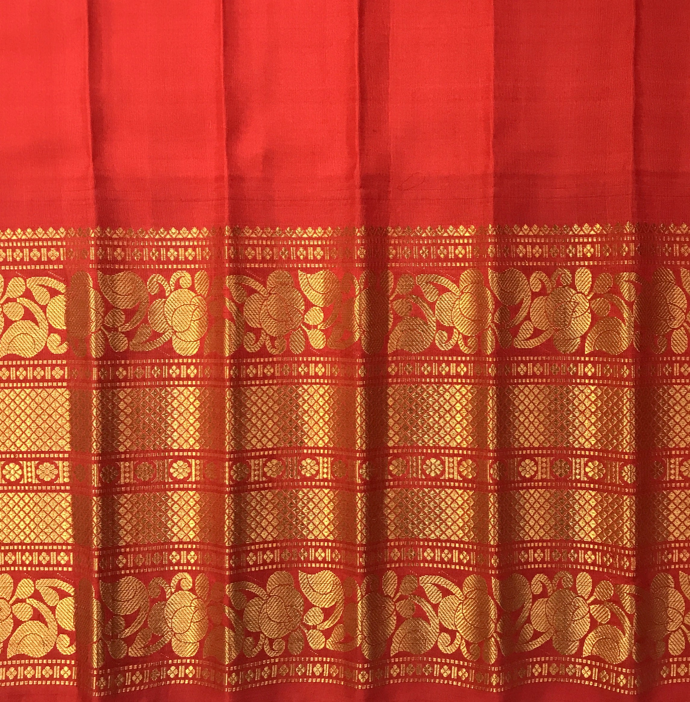 Blouse Colour: Contrast ( Red with Golden zari border )