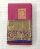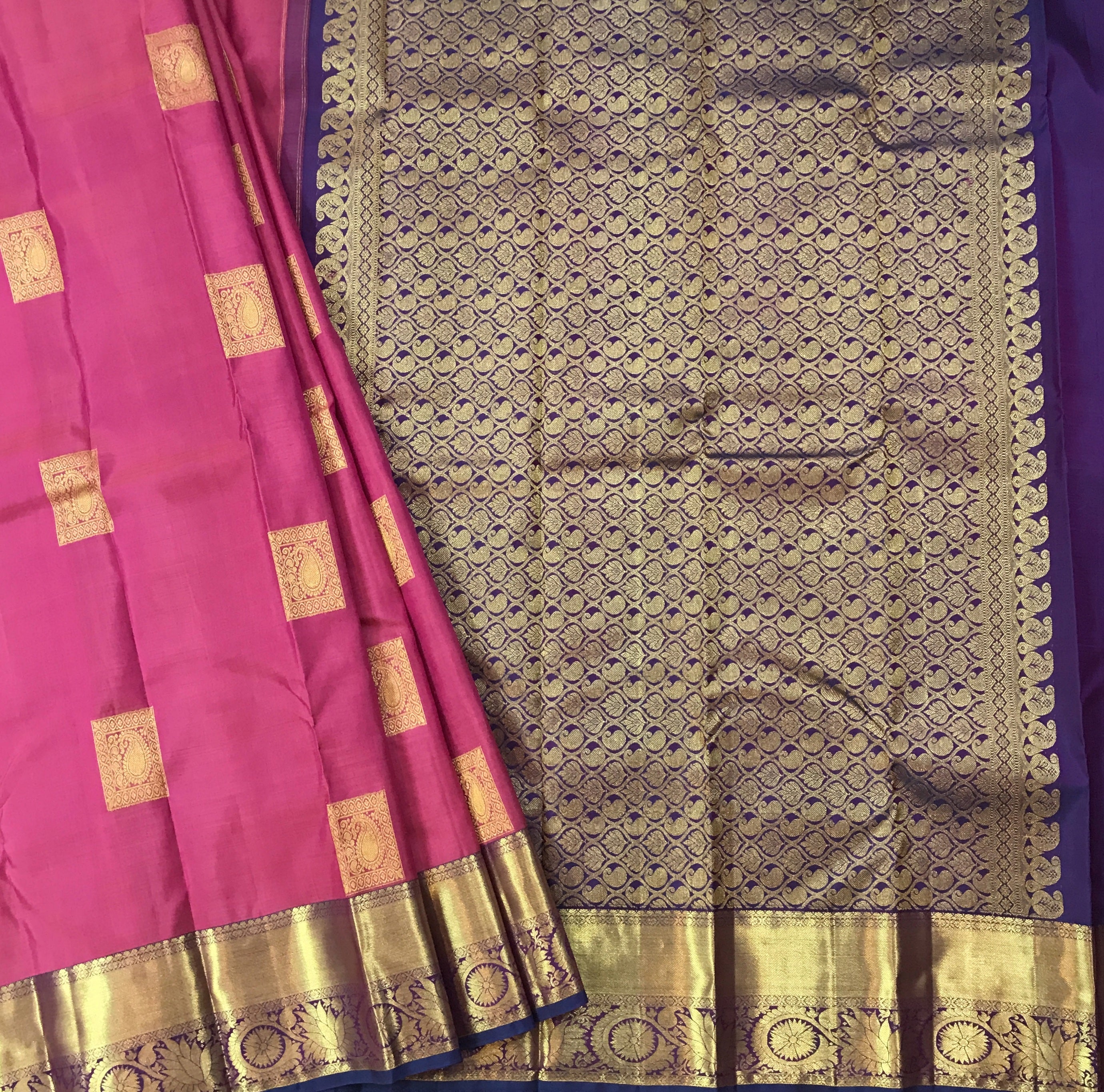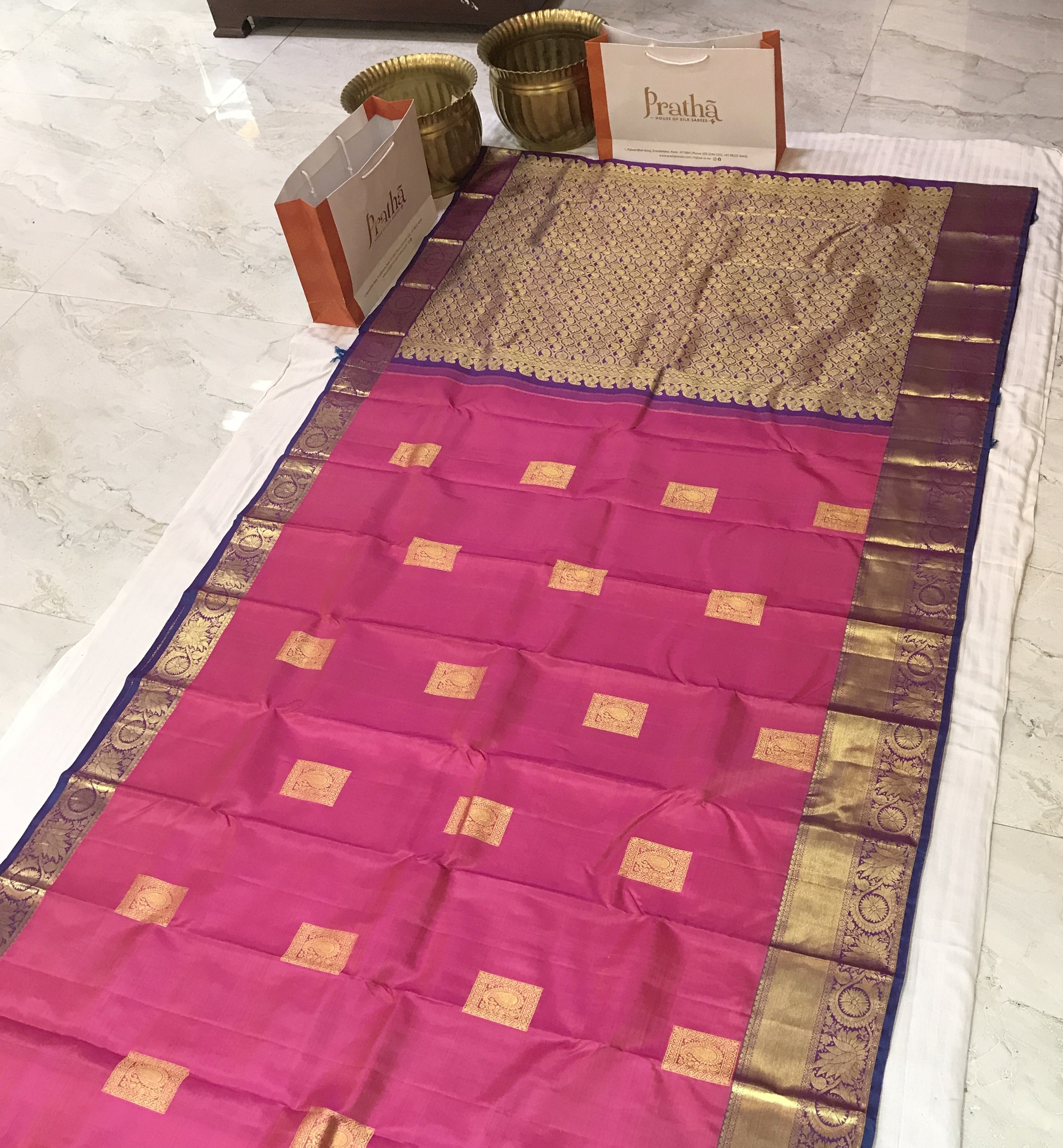 This phenomenal shade of pink pure silk handwoven Kanjeevaram, this one is perfectly traditional. The delicate butti designs, golden pink zari border and richly woven Pallu make this weave a classic! Thanks to its beautiful colour with the combination of gold, this Kanjeevaram will look great in the day as well as at night! Do not miss that, this saree has a very beautiful golden zari border looks outstanding when we wear.