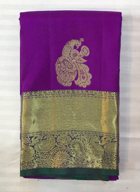 Blouse: Contrast ( Dhoop-chav of purple with elegant golden zari border)