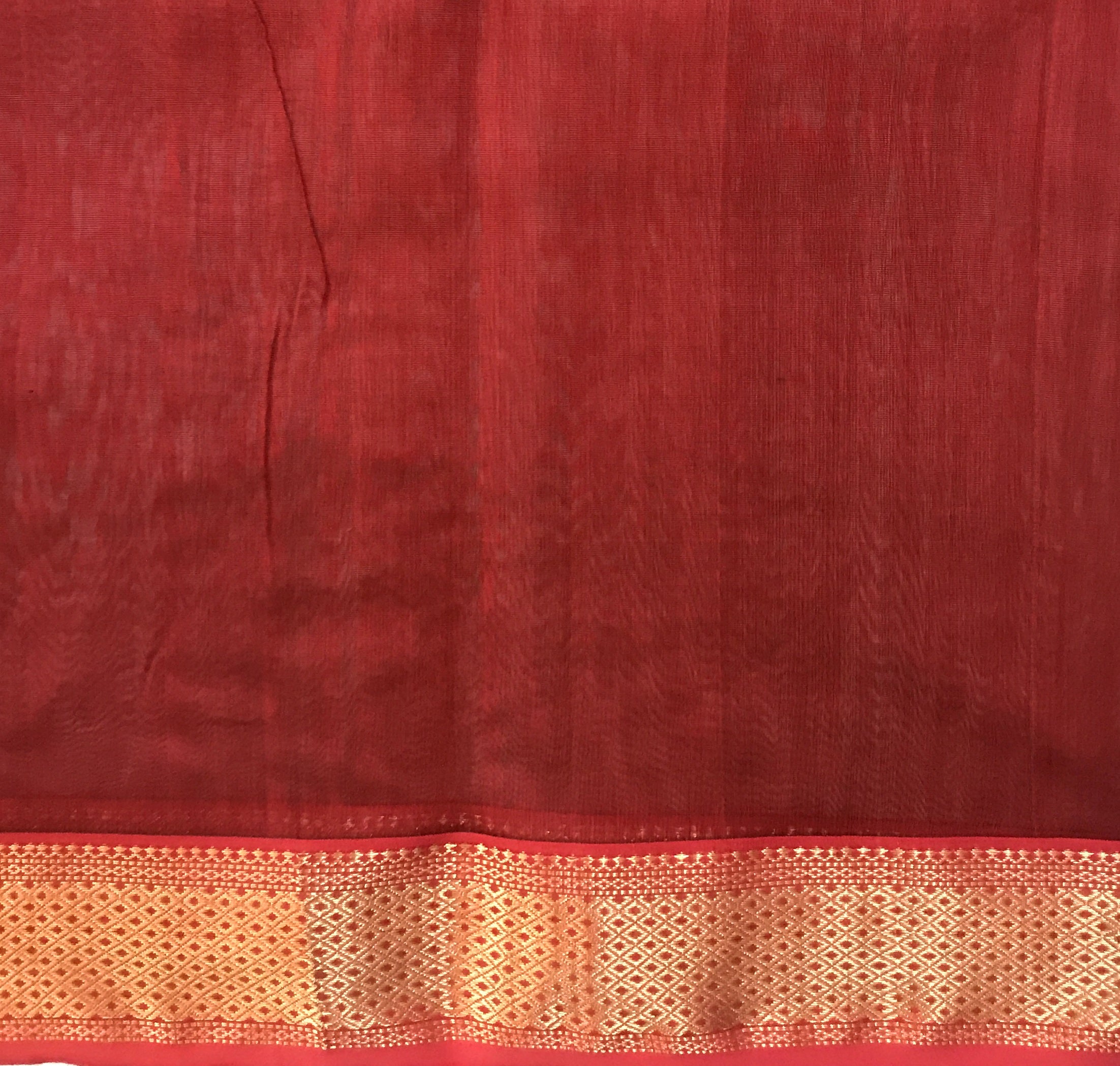 Blouse colour: Contrast ( Red with a golden zari border; saree comes with tassels)