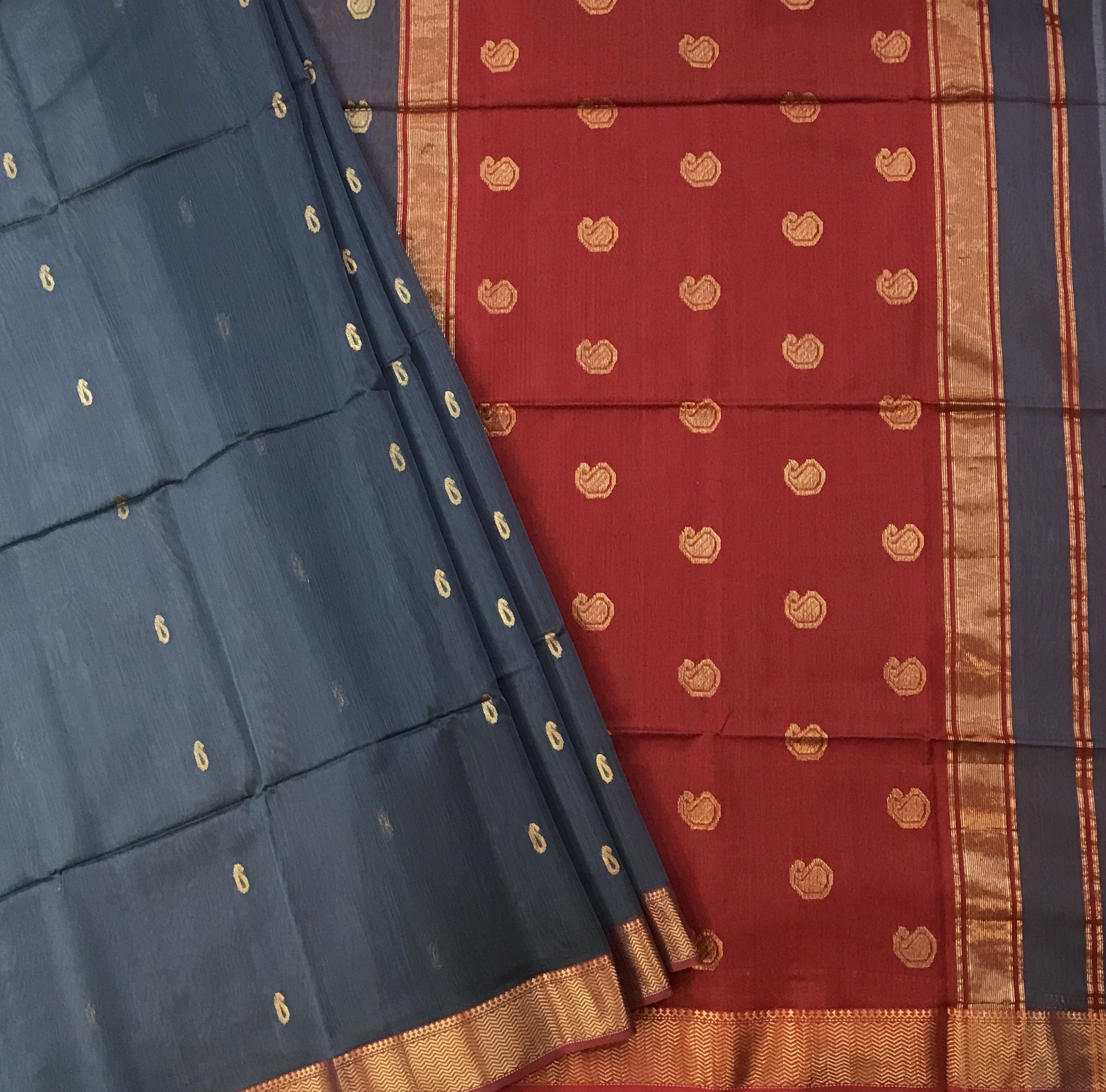 Maheshwari sarees are celebrated for their exceptional craftsmanship and deep-rooted heritage. These sarees are known for their light and airy texture, detailed designs, and vivid colors. Distinctive motifs, often floral, are a hallmark of these sarees. Valued for their comfort and grace, Maheshwari sarees are perfect for any occasion, from formal events to festive gatherings. Each saree reflects India's traditional weaving techniques and artistic mastery, making it a timeless piece in any woman's collection. Grab this beautiful grey shade of Maheshwari saree.