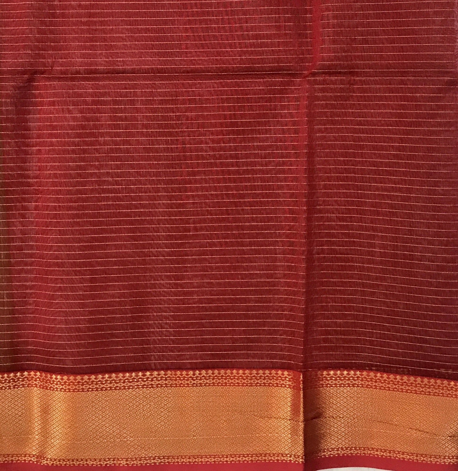 Blouse Colour: Contrast ( Maroon with golden zari border and saree comes along with tassels )