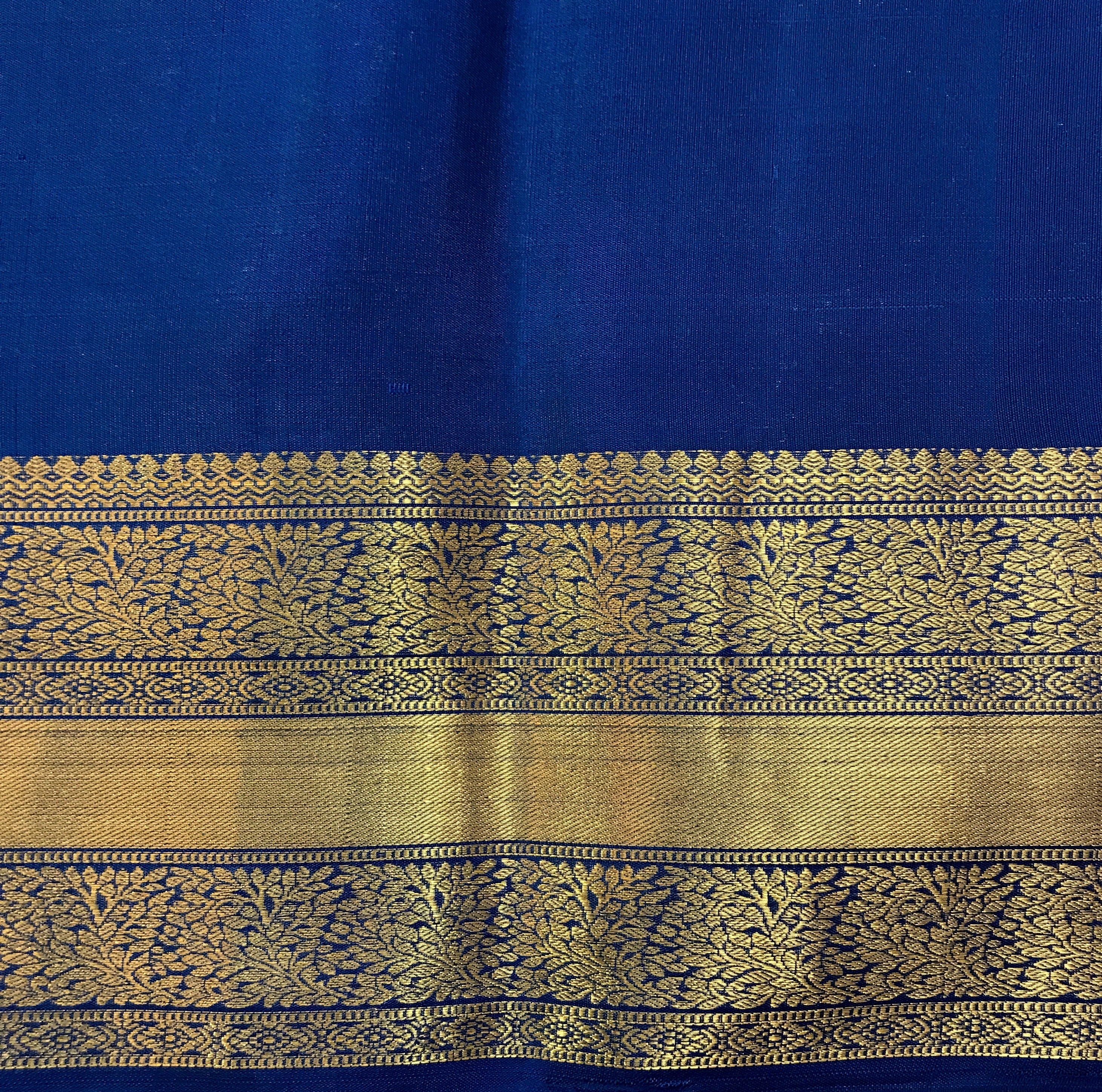 Blouse Colour: Contrast ( Blue with golden zari border )