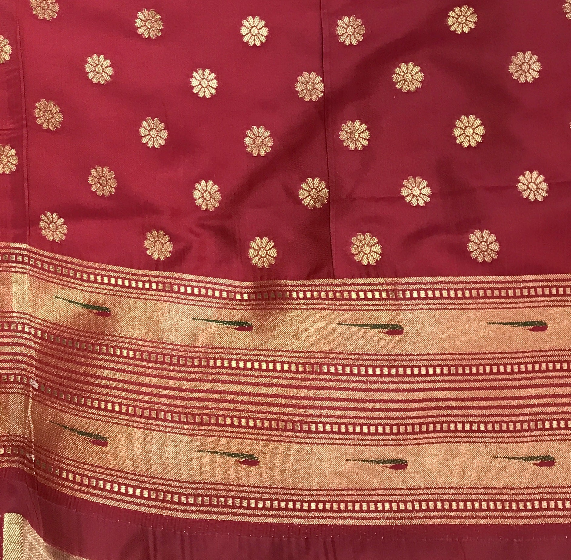 Blouse Colour: Contrast ( Red with butti with muniya zari border)