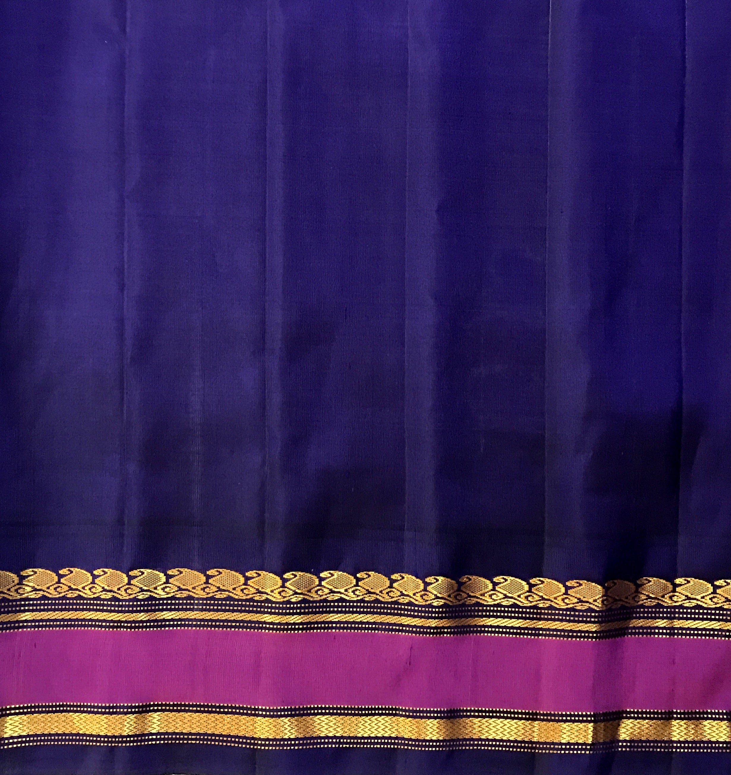 Blouse Colour : Contrast ( Blue with pink zari border)
