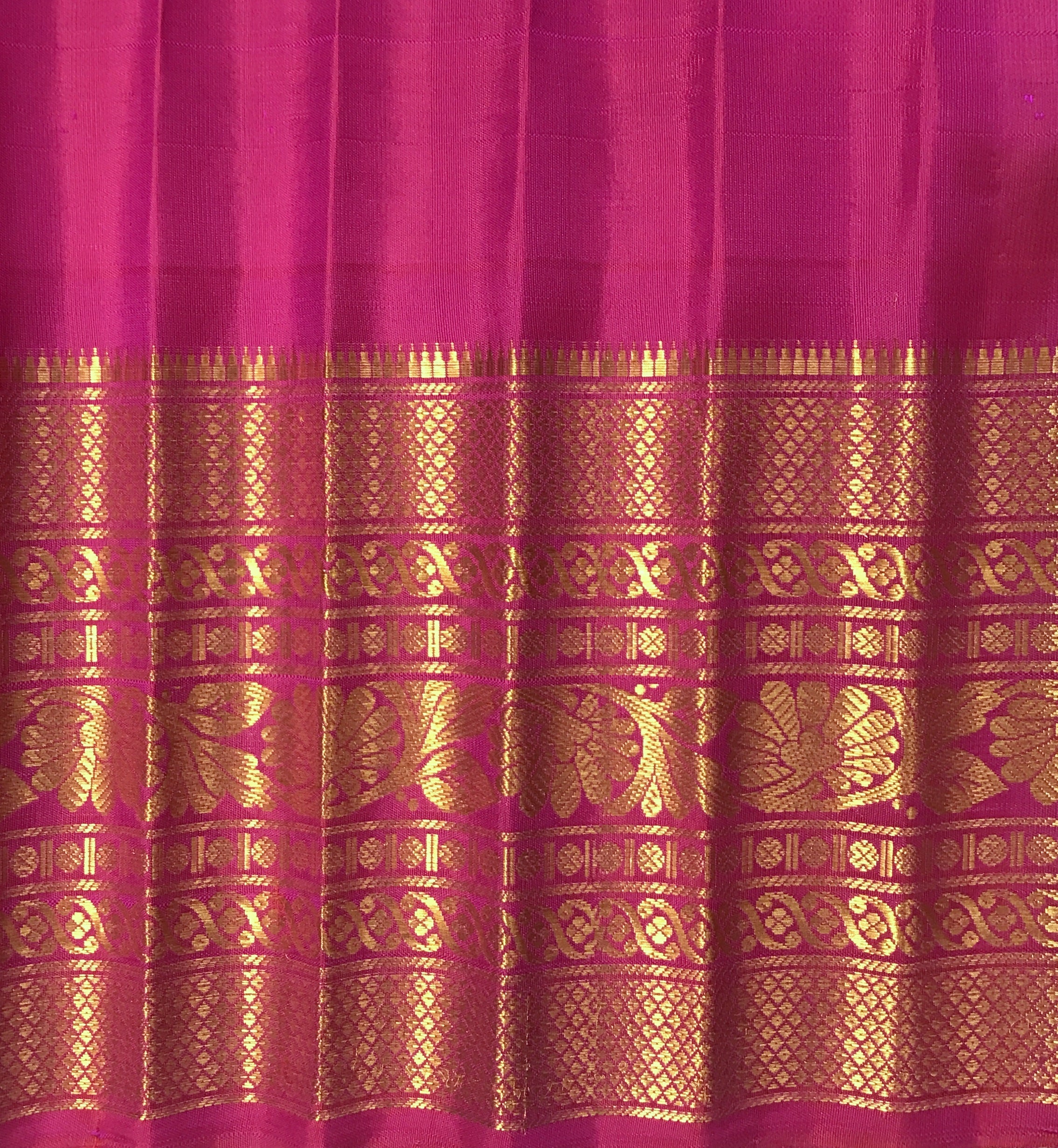 Blouse Colour: Contrast ( Pink with golden zari border )