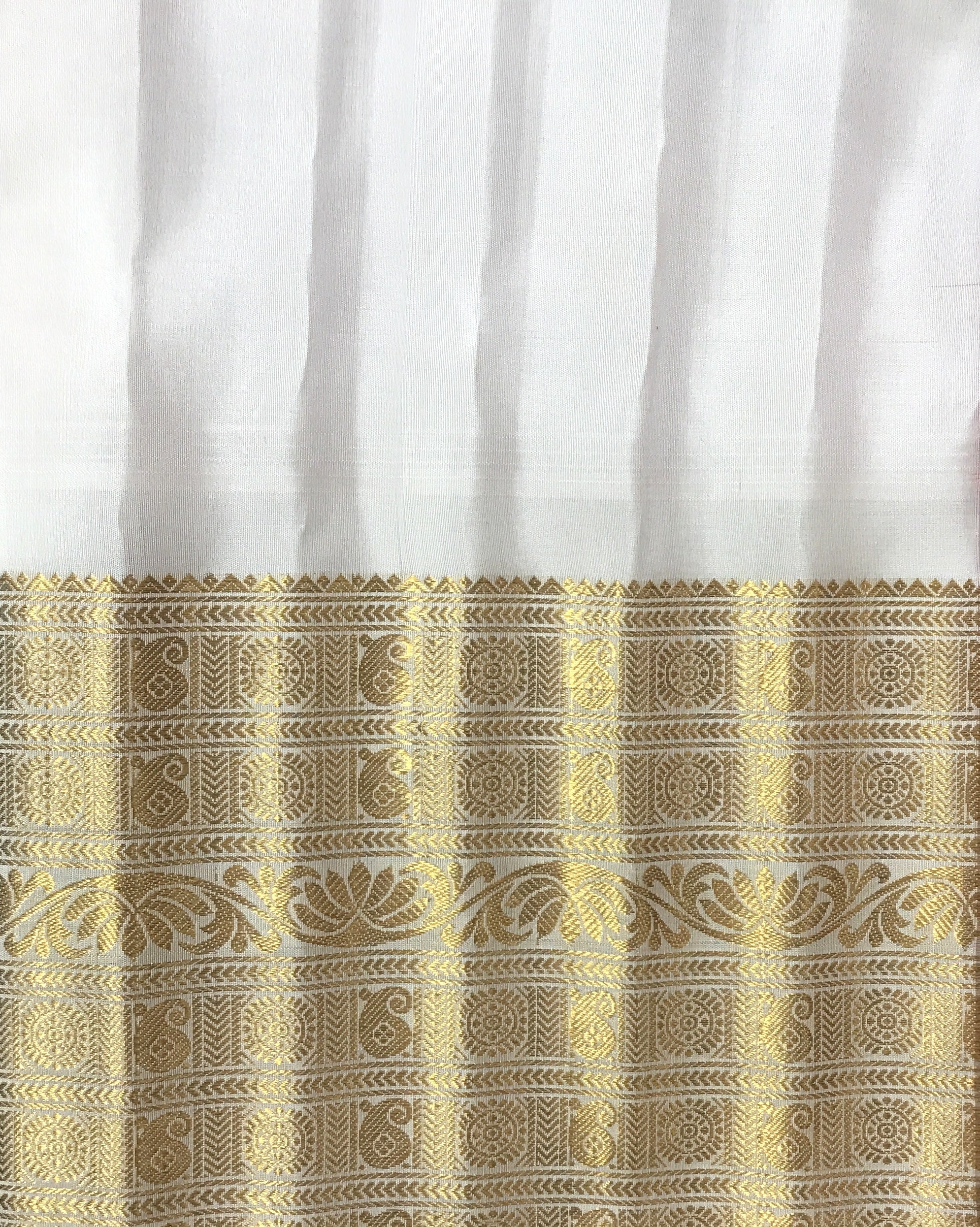Blouse Colour: Contrast ( Off white with golden zari border )