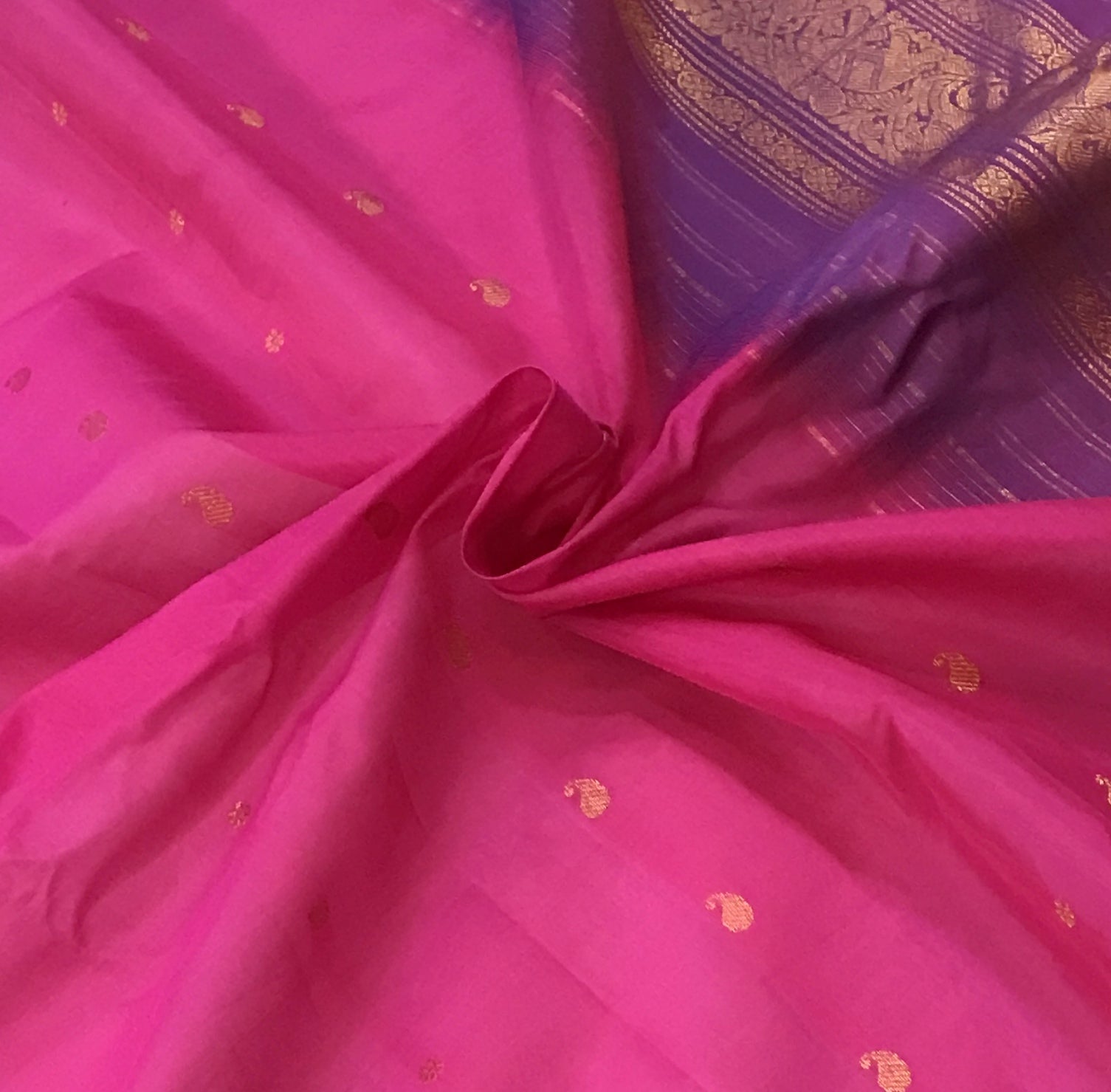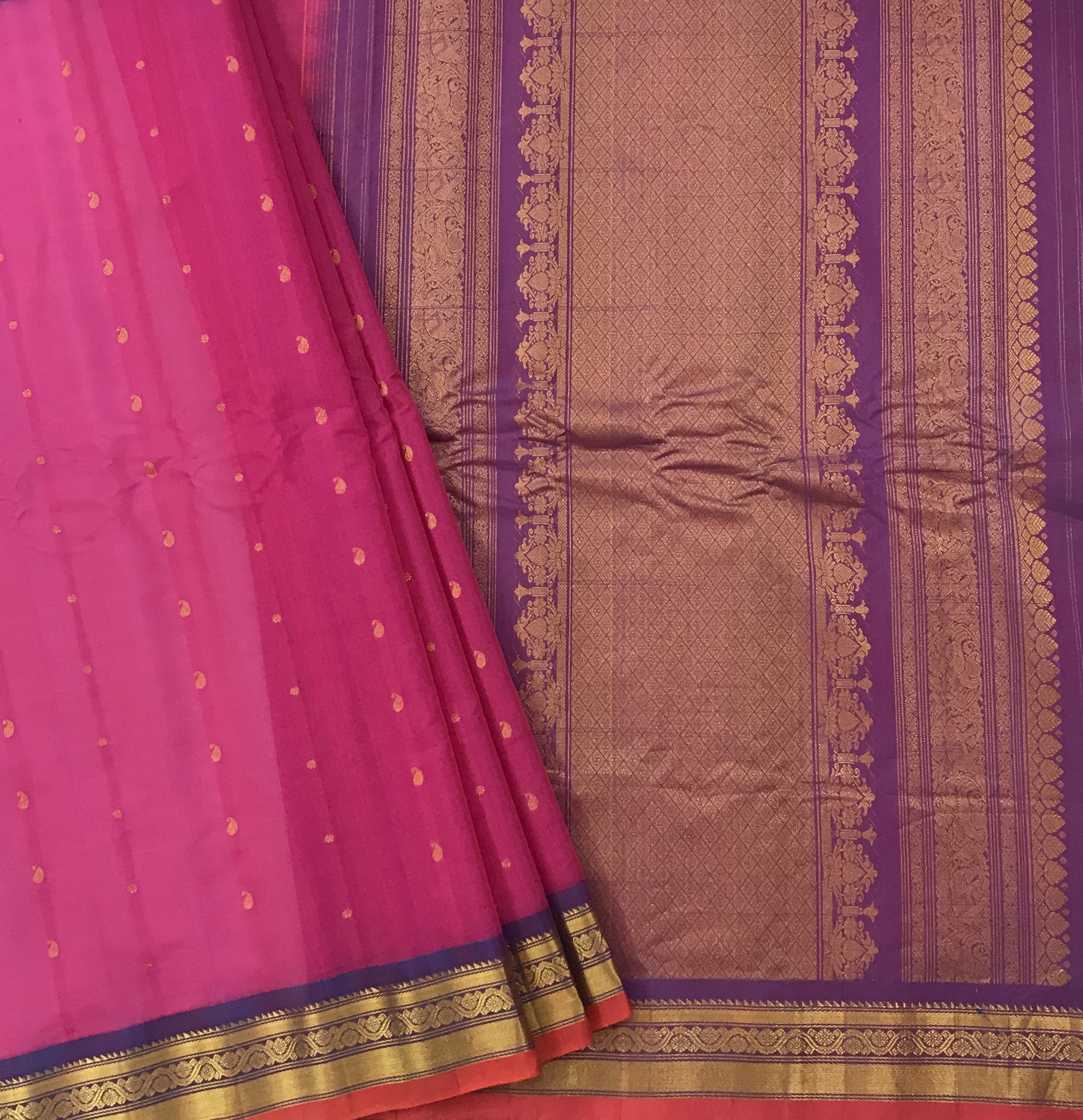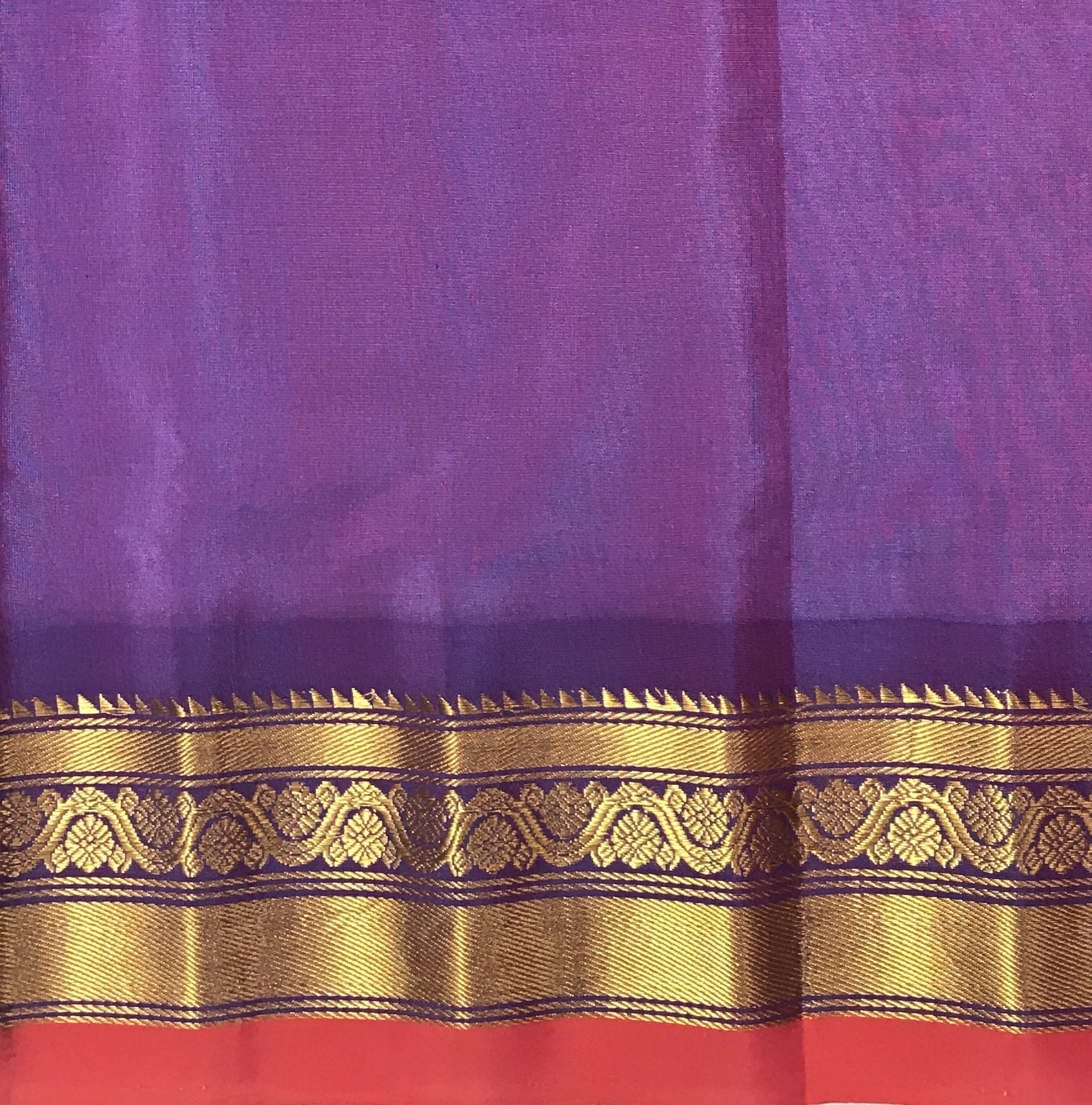 Blouse: Contrast ( Purple with golden zari border )