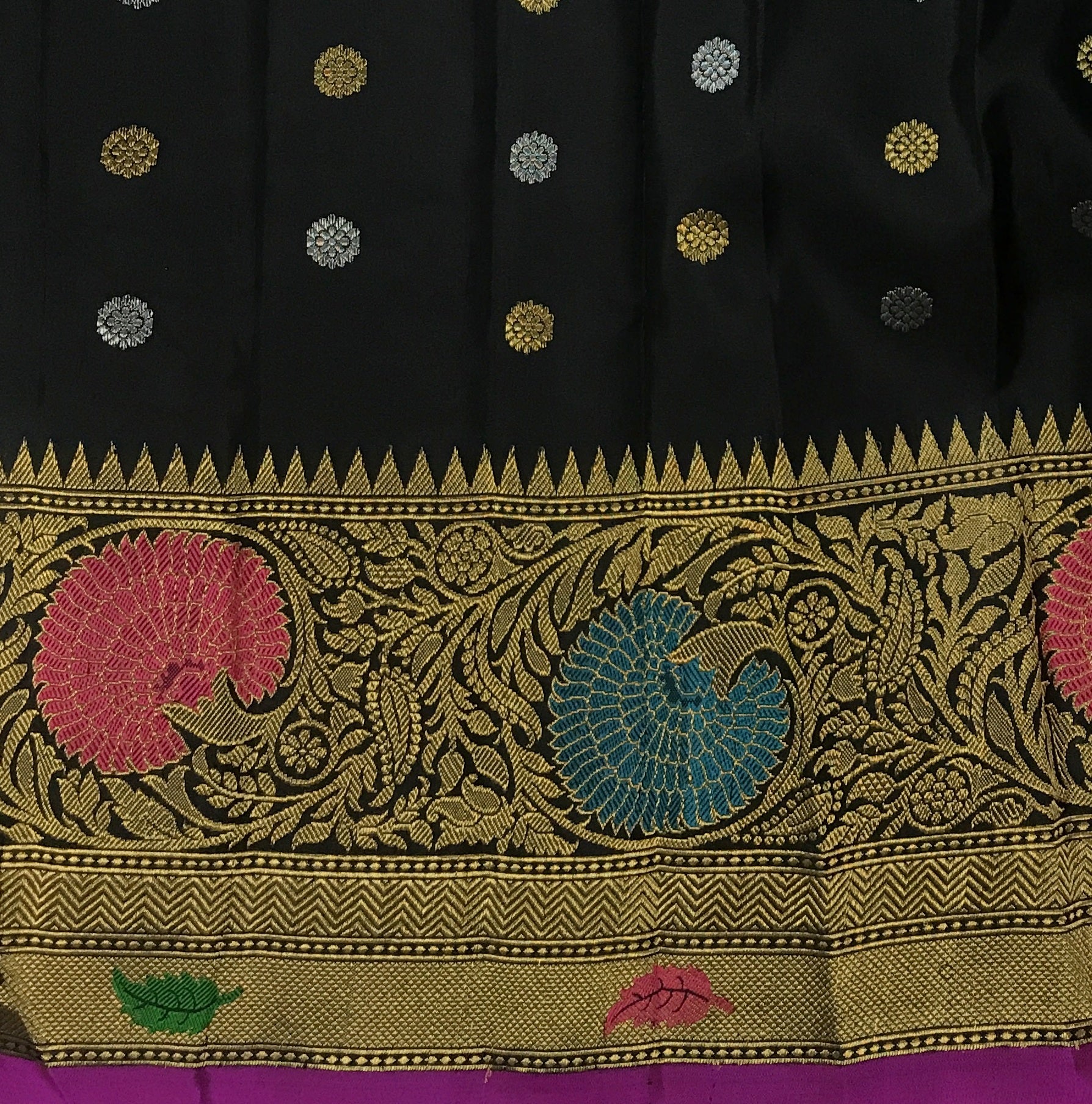 Blouse colour : Contrast ( Black with butti with meenakari border )