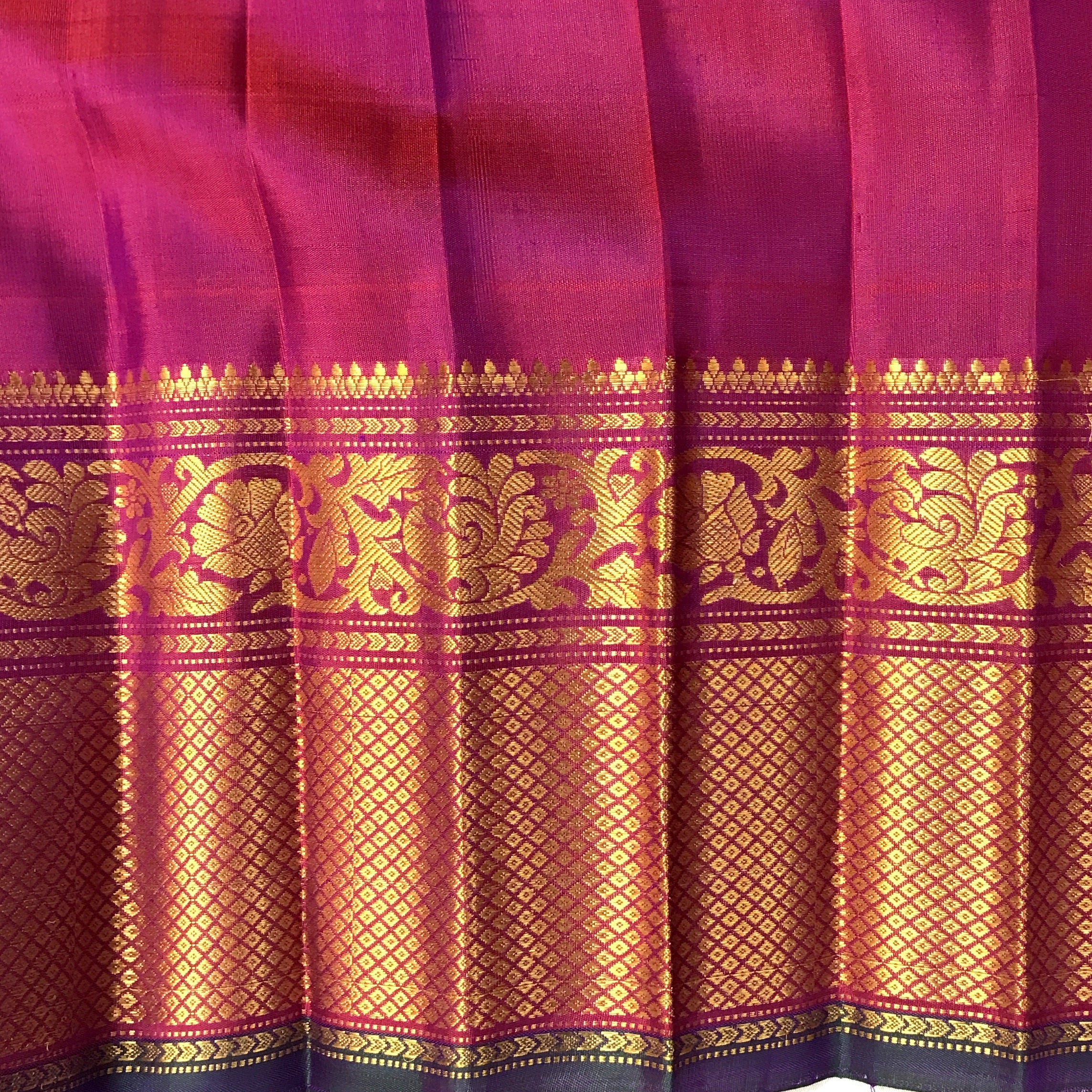 Blouse Colour: Contrast ( Pink with Golden zari border )