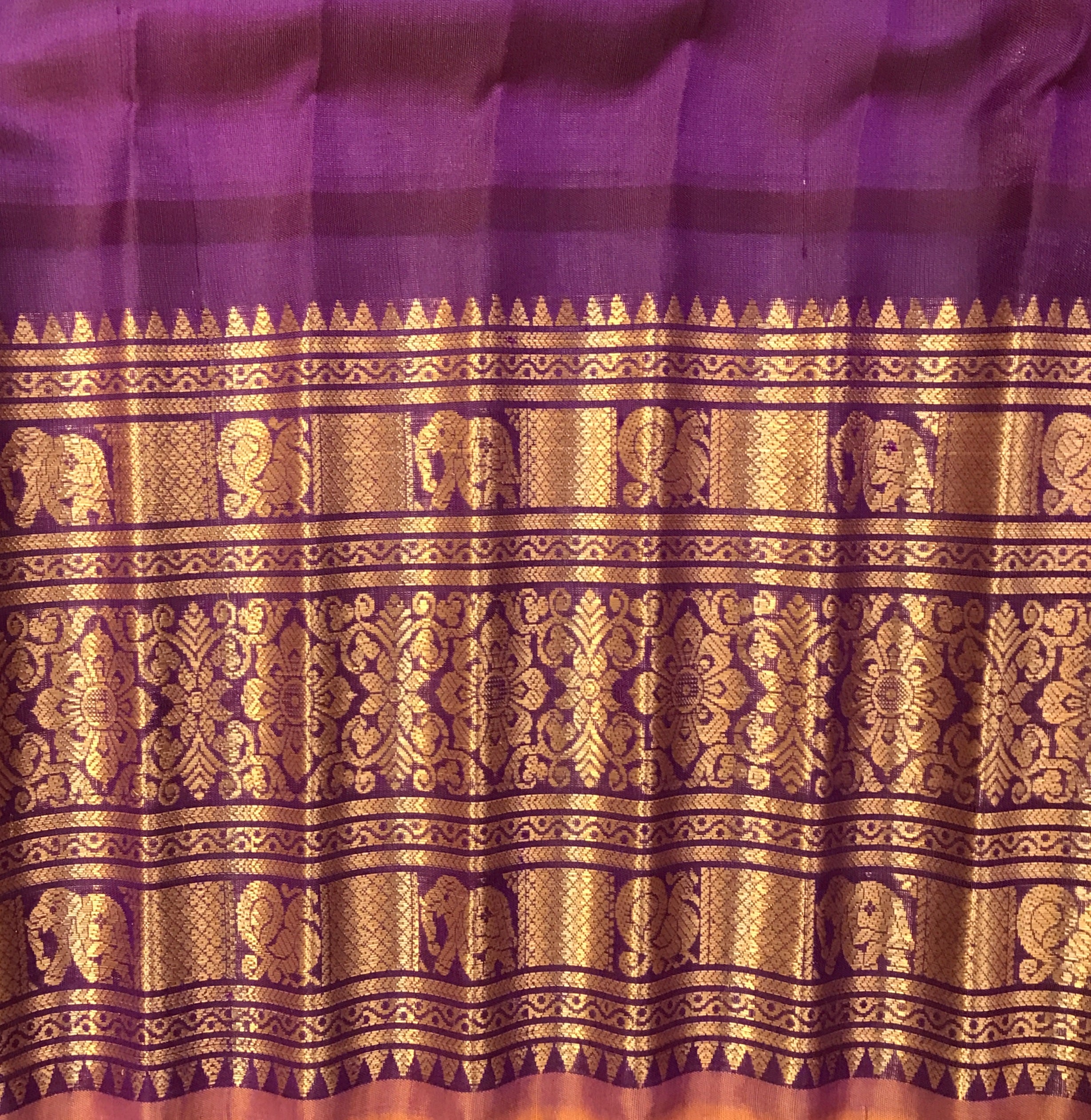 Blouse Colour: Contrast ( Plain purple with golden zari border )
