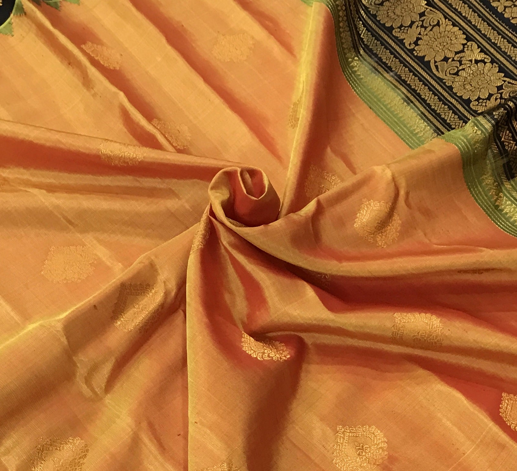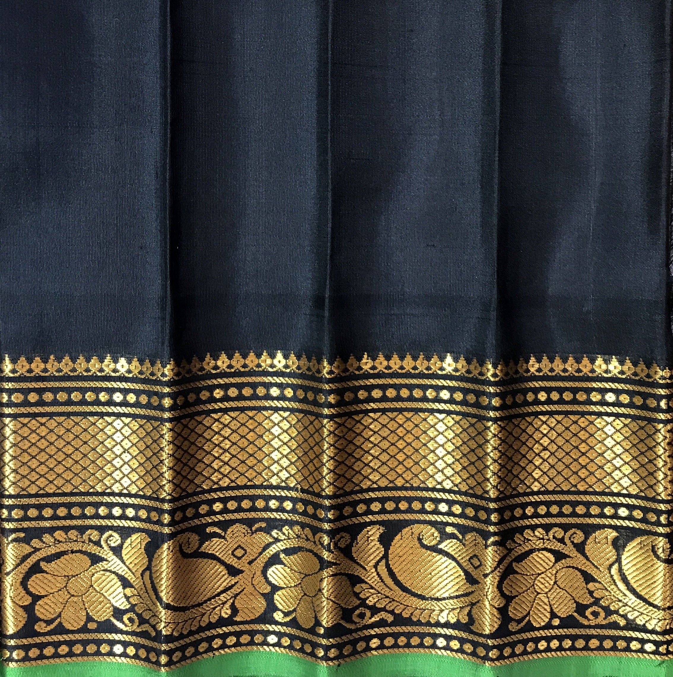Blouse Colour: Contrast ( Black with Golden zari border )
