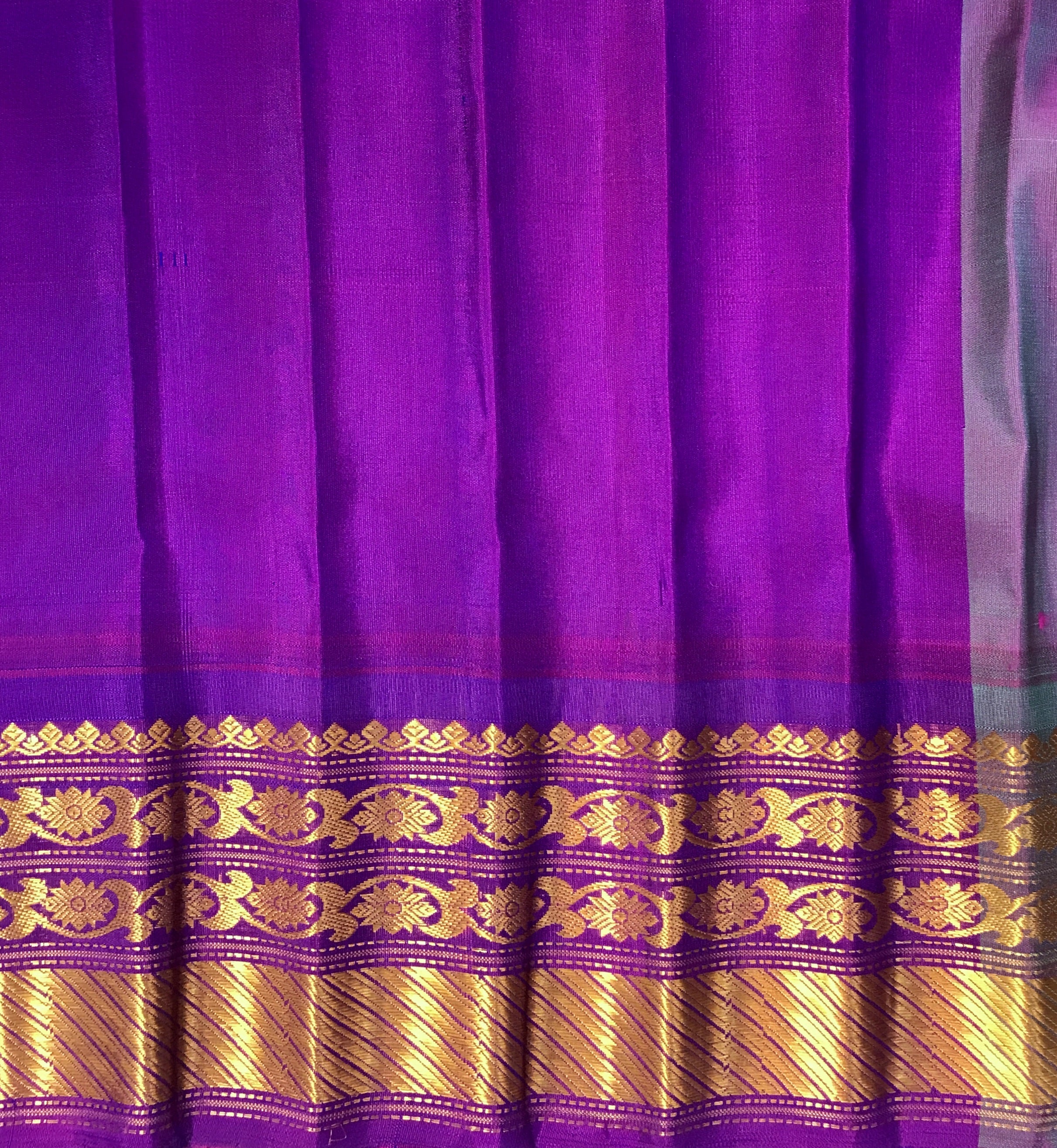 Blouse Colour: Contrast ( Purple with golden zari border )