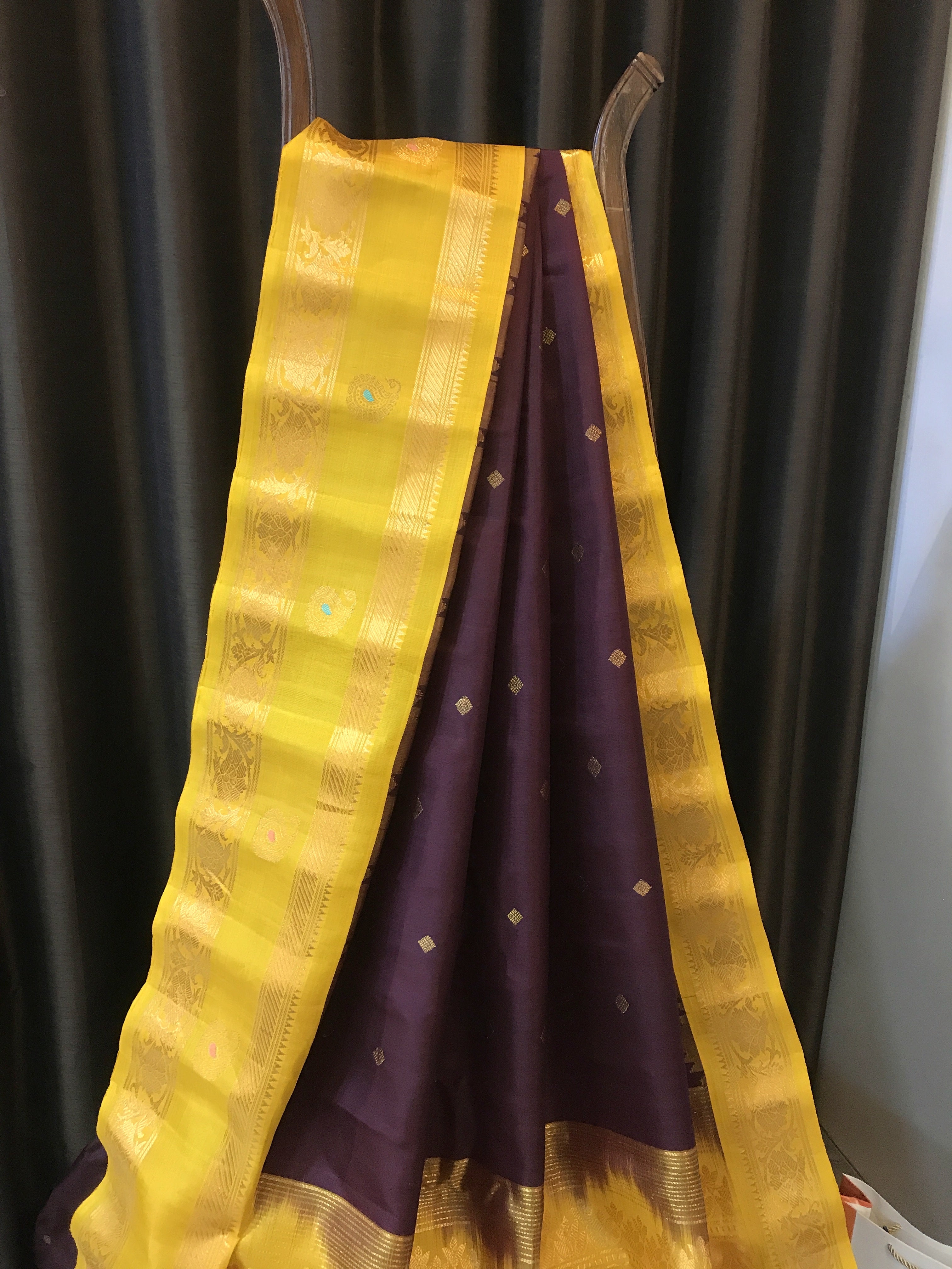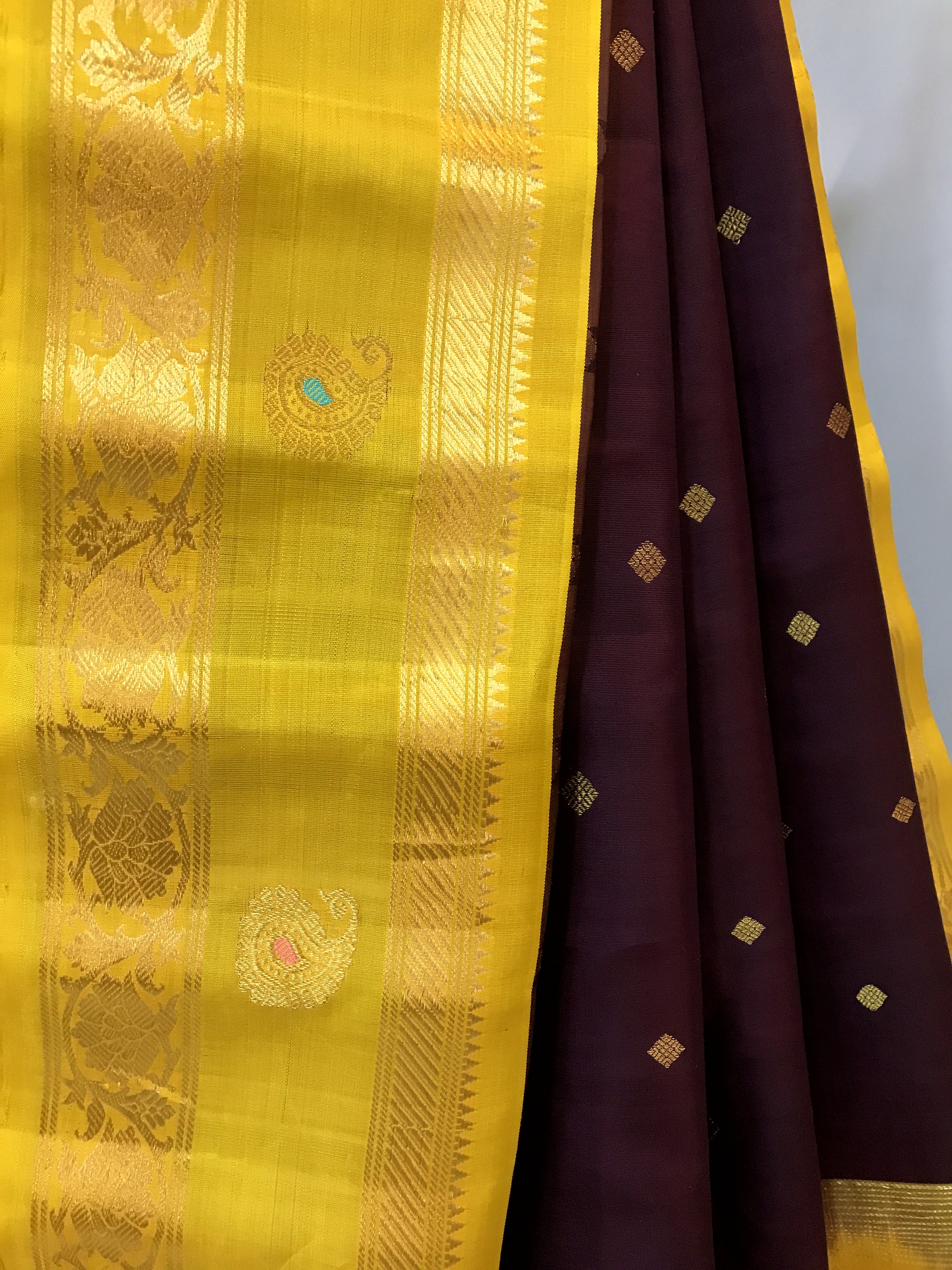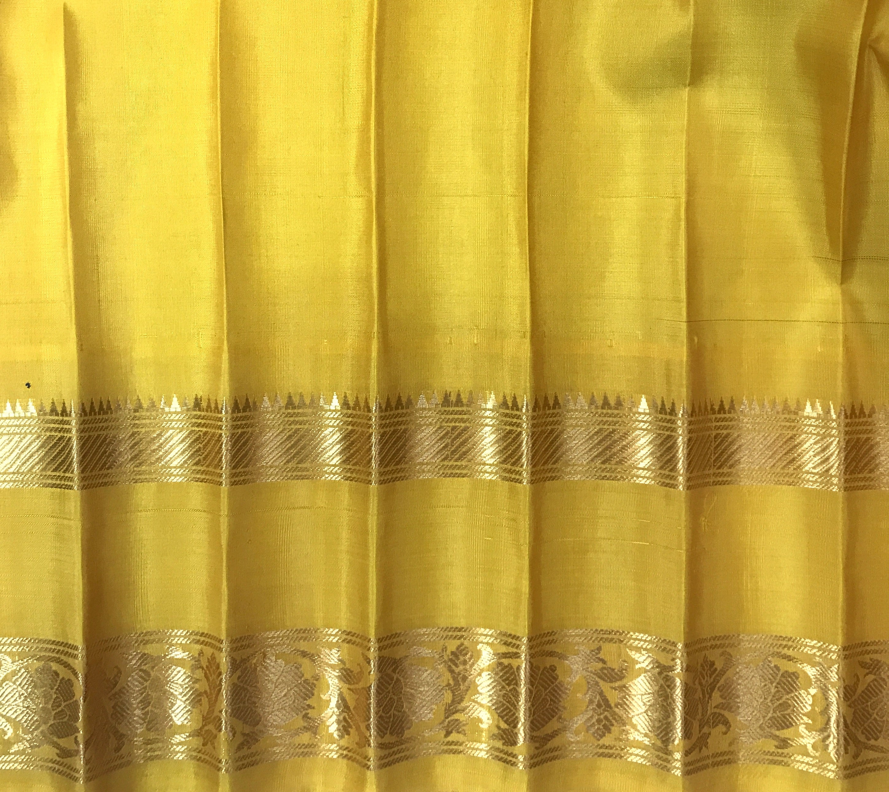 Blouse Colour: Contrast ( Yellow with zari border )