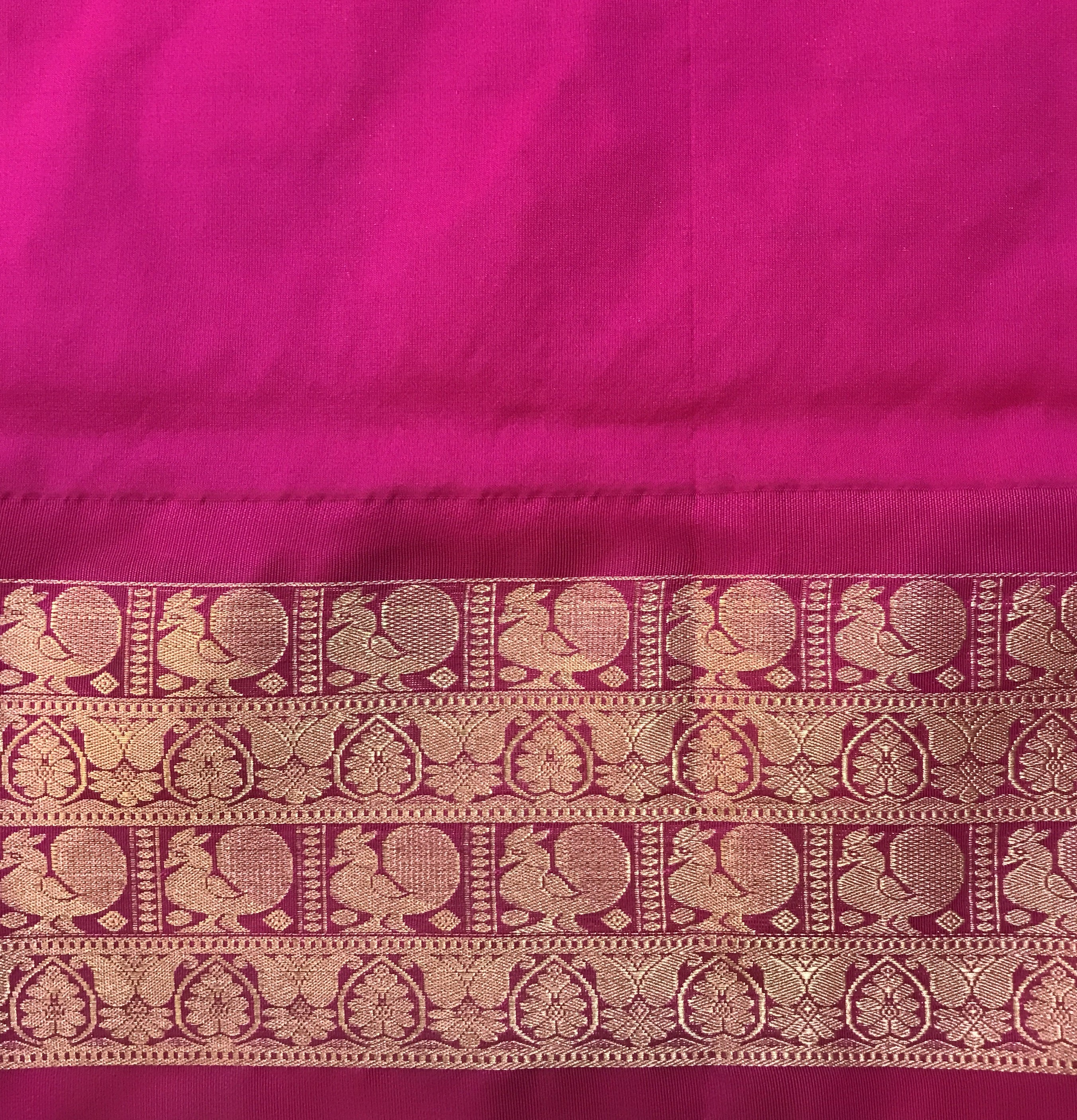 Blouse Colour: Contrast ( Pink with zari border )