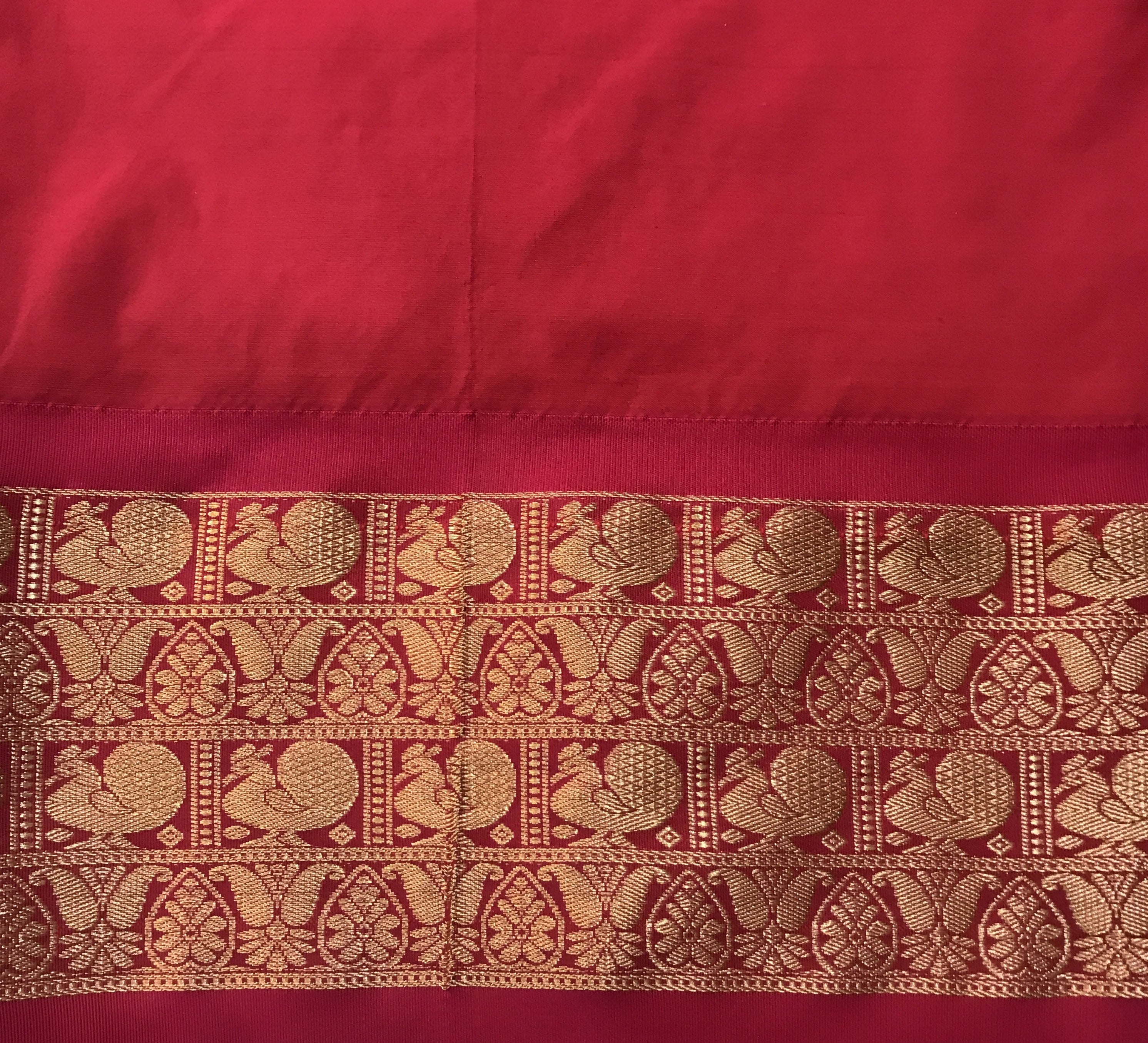Blouse Colour: Contrast ( pink-Red with zari border )