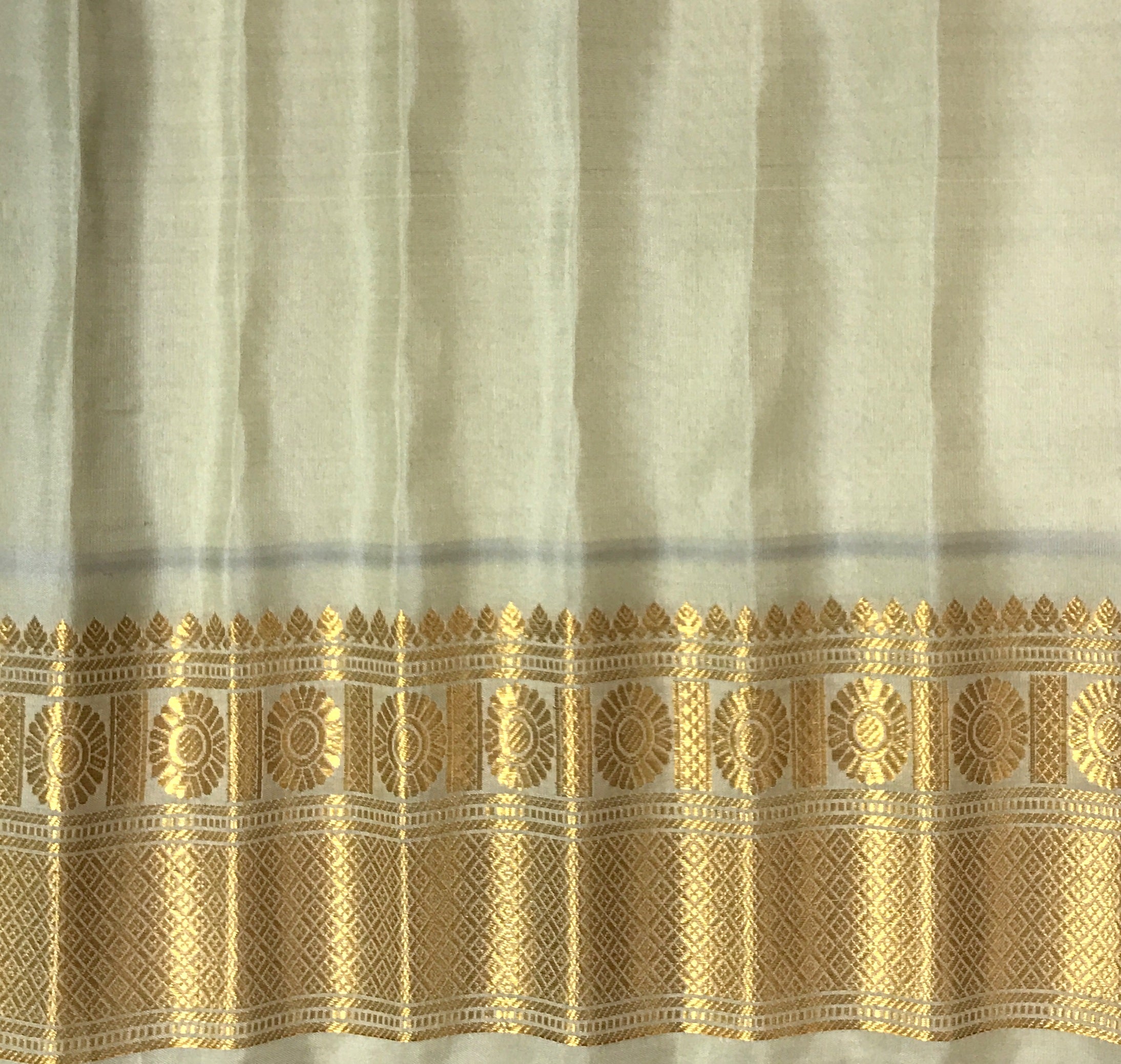 Blouse Colour: Contrast ( Pista with golden zari border)