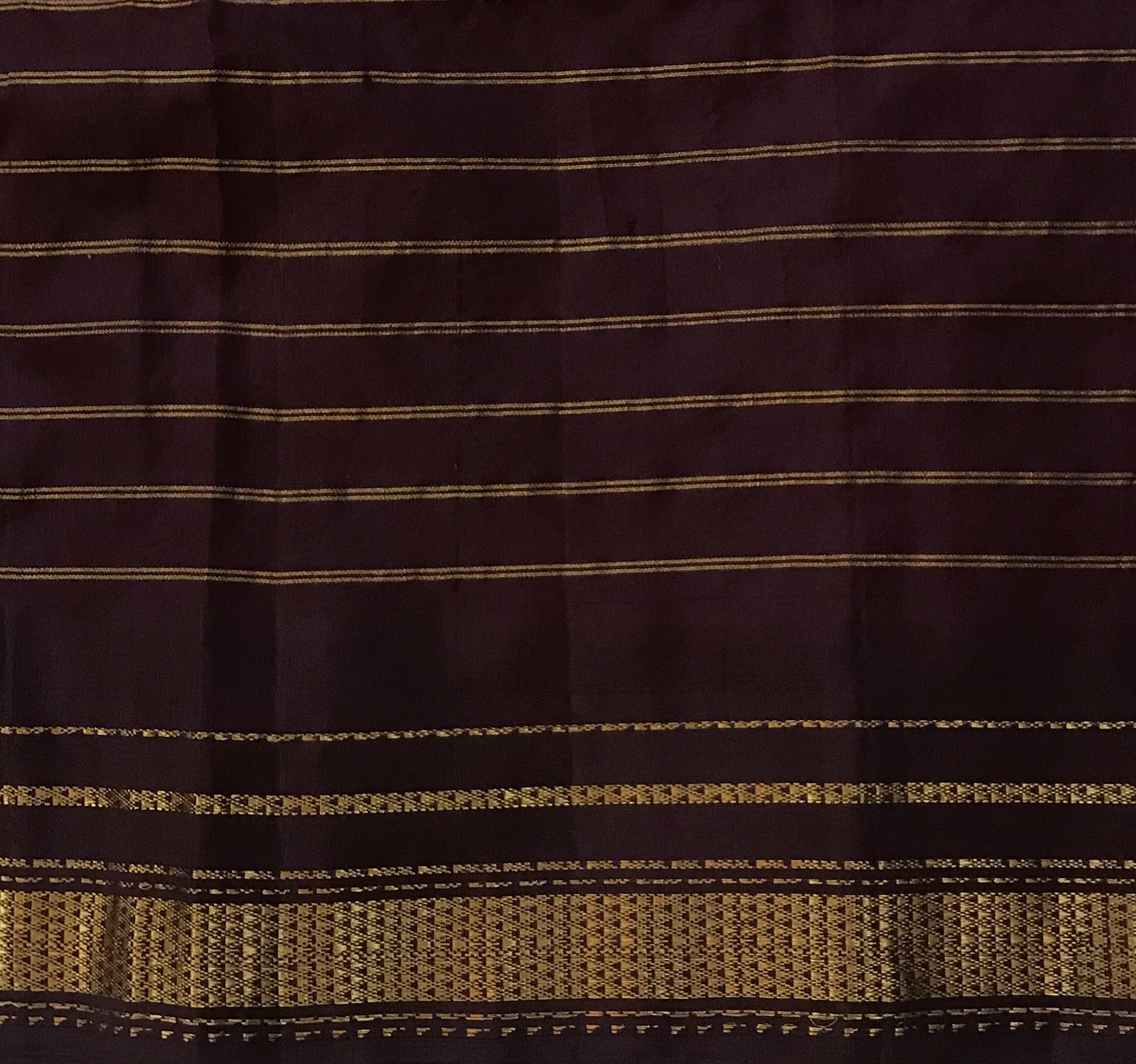 Blouse Colour: Contrast ( Coffee-brown with zari lines and zari border )