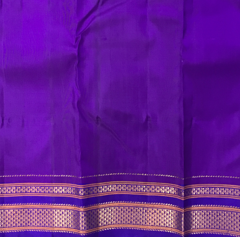 Blouse Colour: Contrast ( Purple with golden zari border )