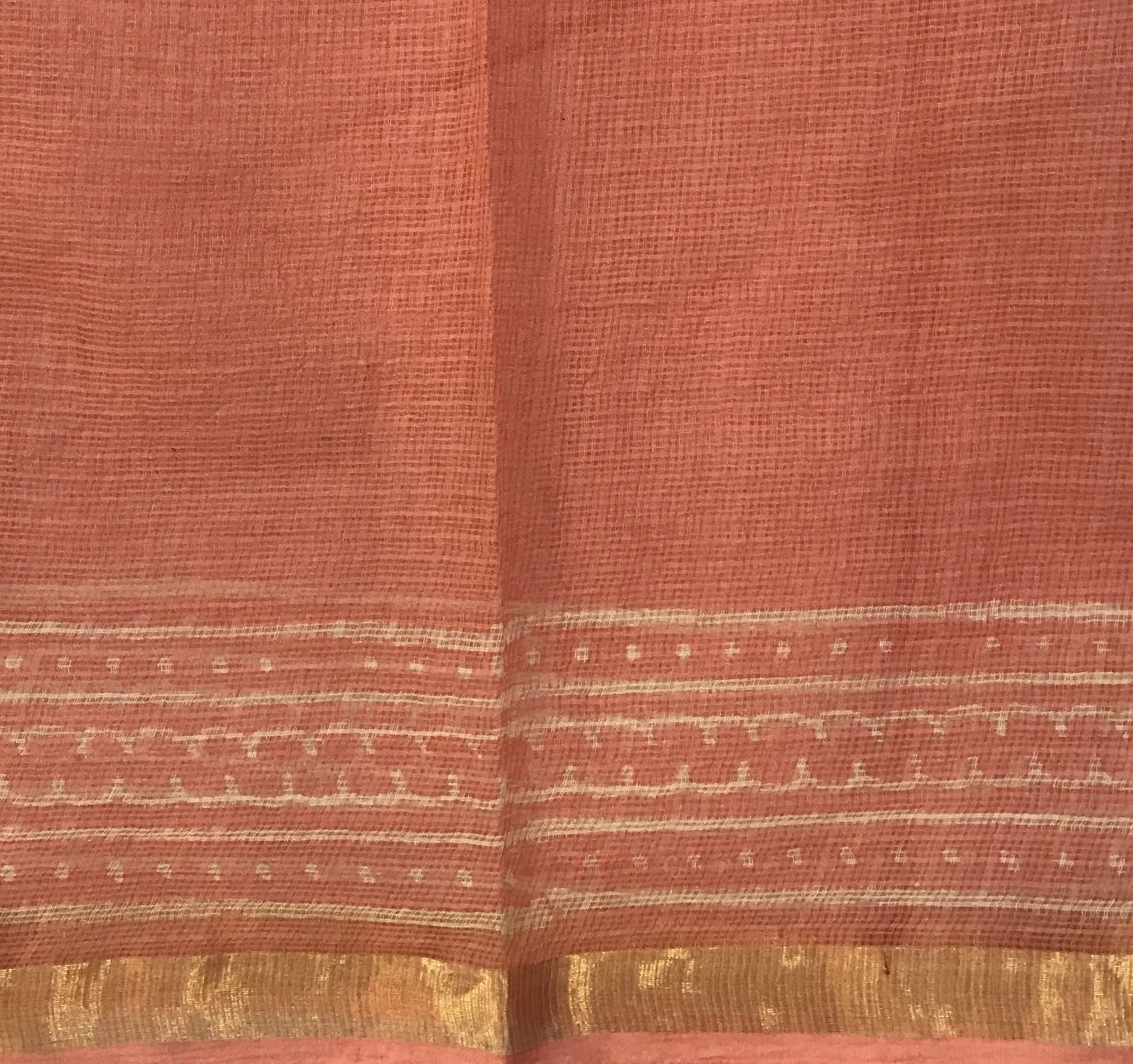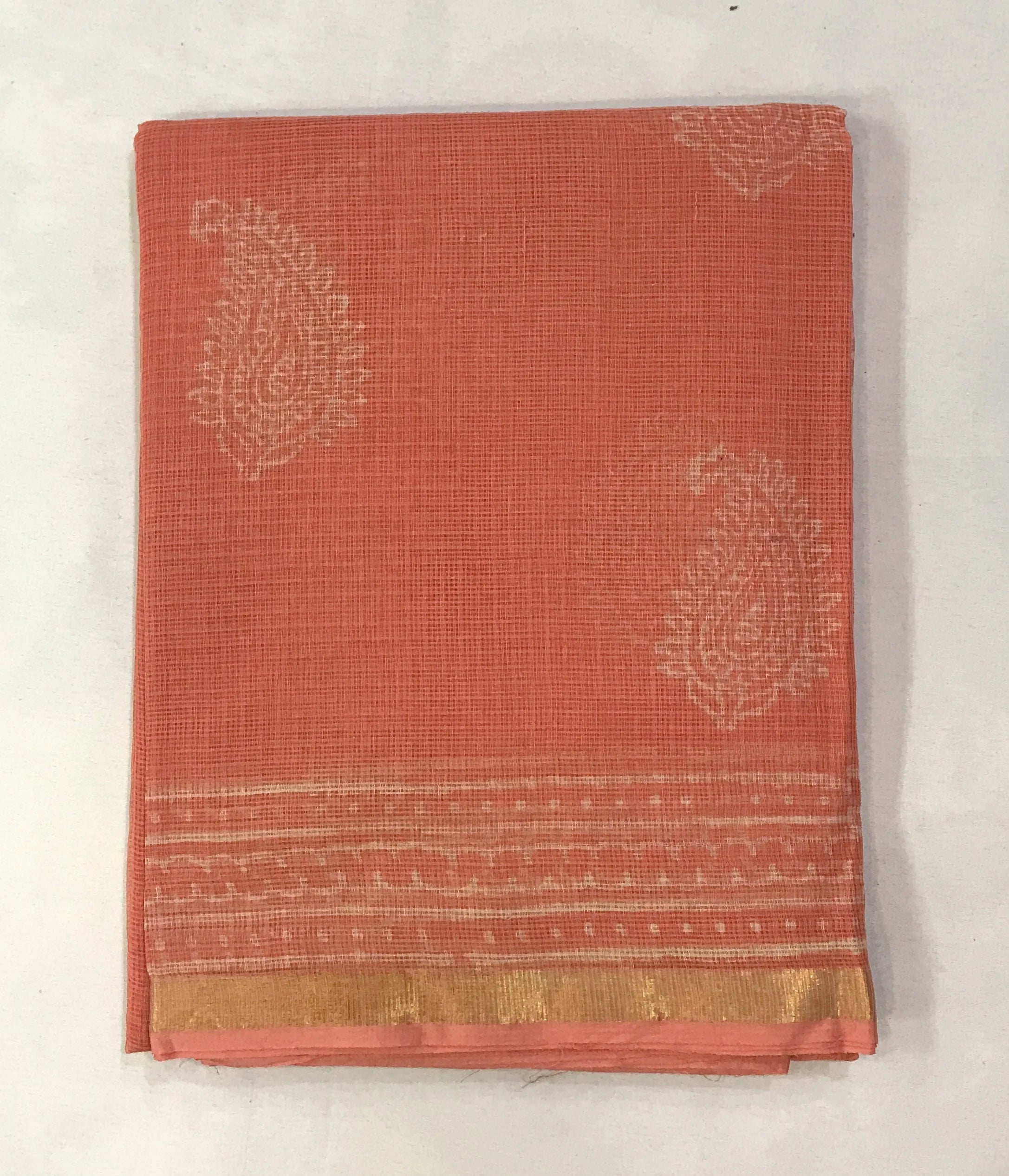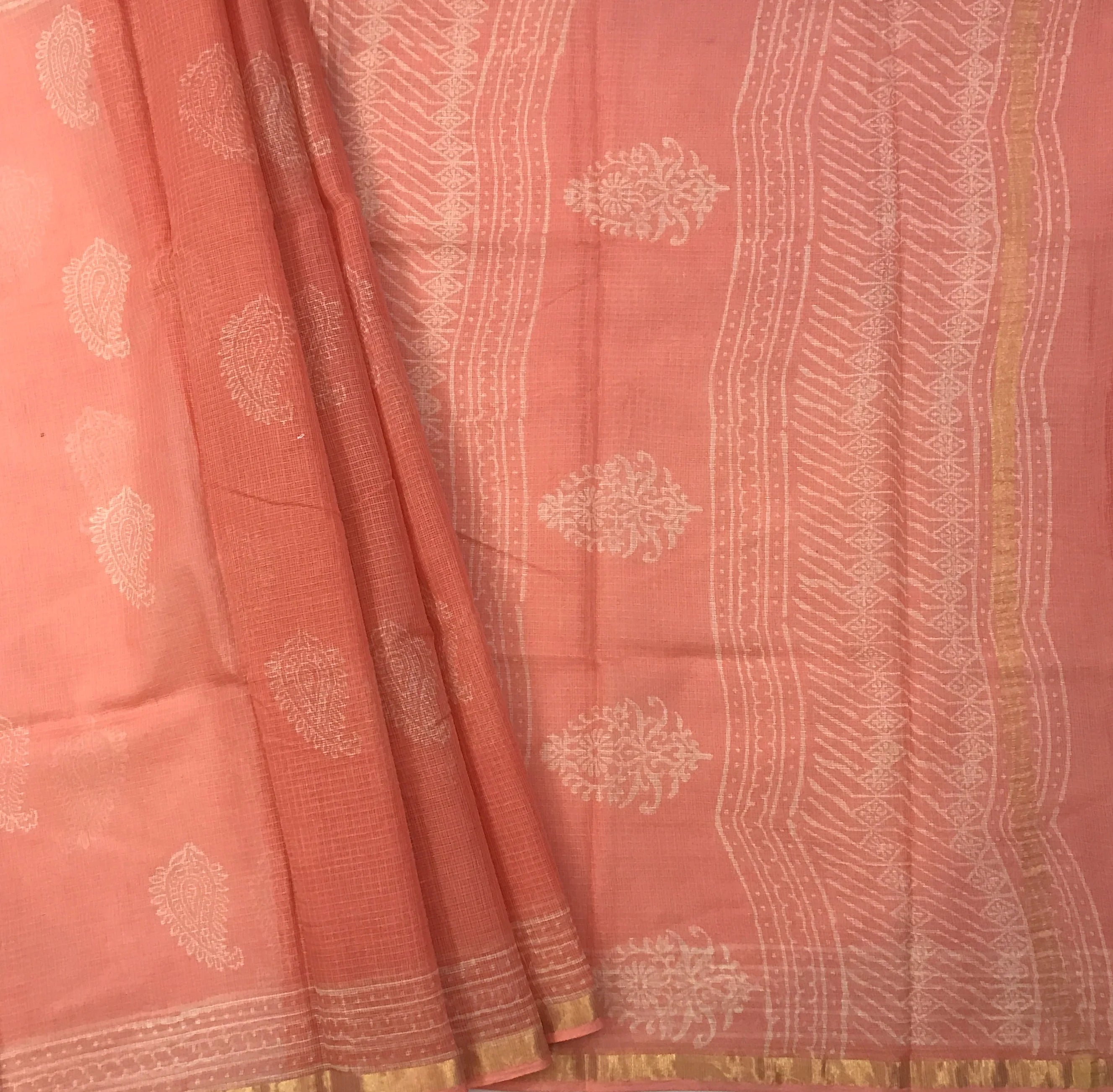 These soothing, beautiful peach pure cotton Kota Doriya Sarees come in an unique pattern of big motif and is like a super net soft cotton fabric, they are lightweight and easy to drape, a perfect pick for casual, summer and get togethers!