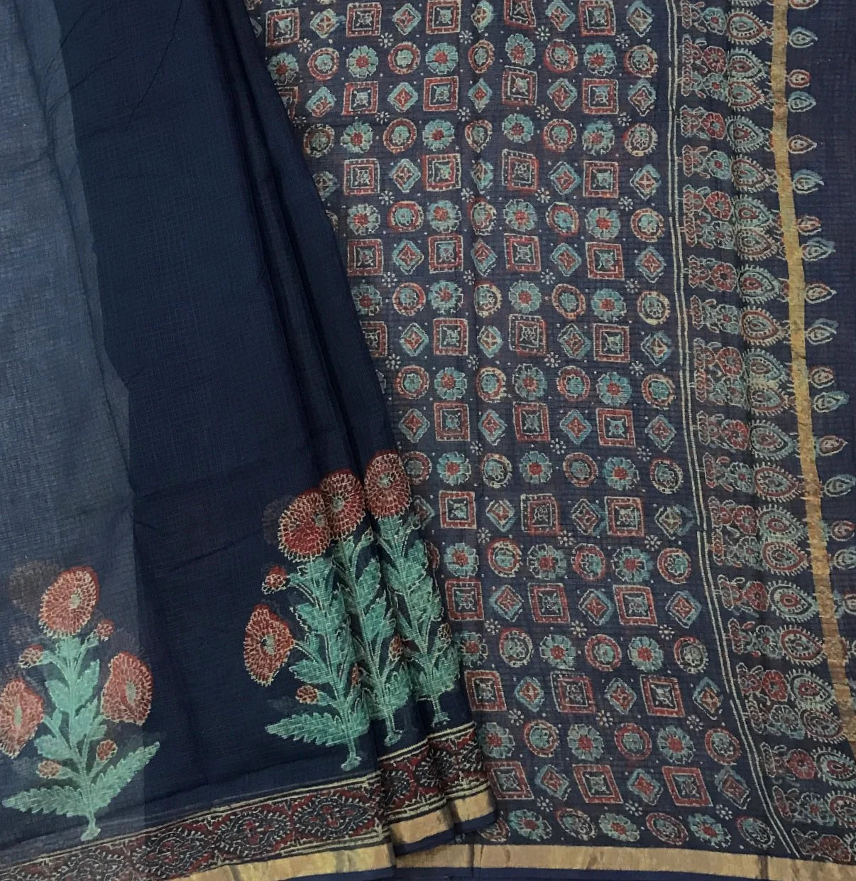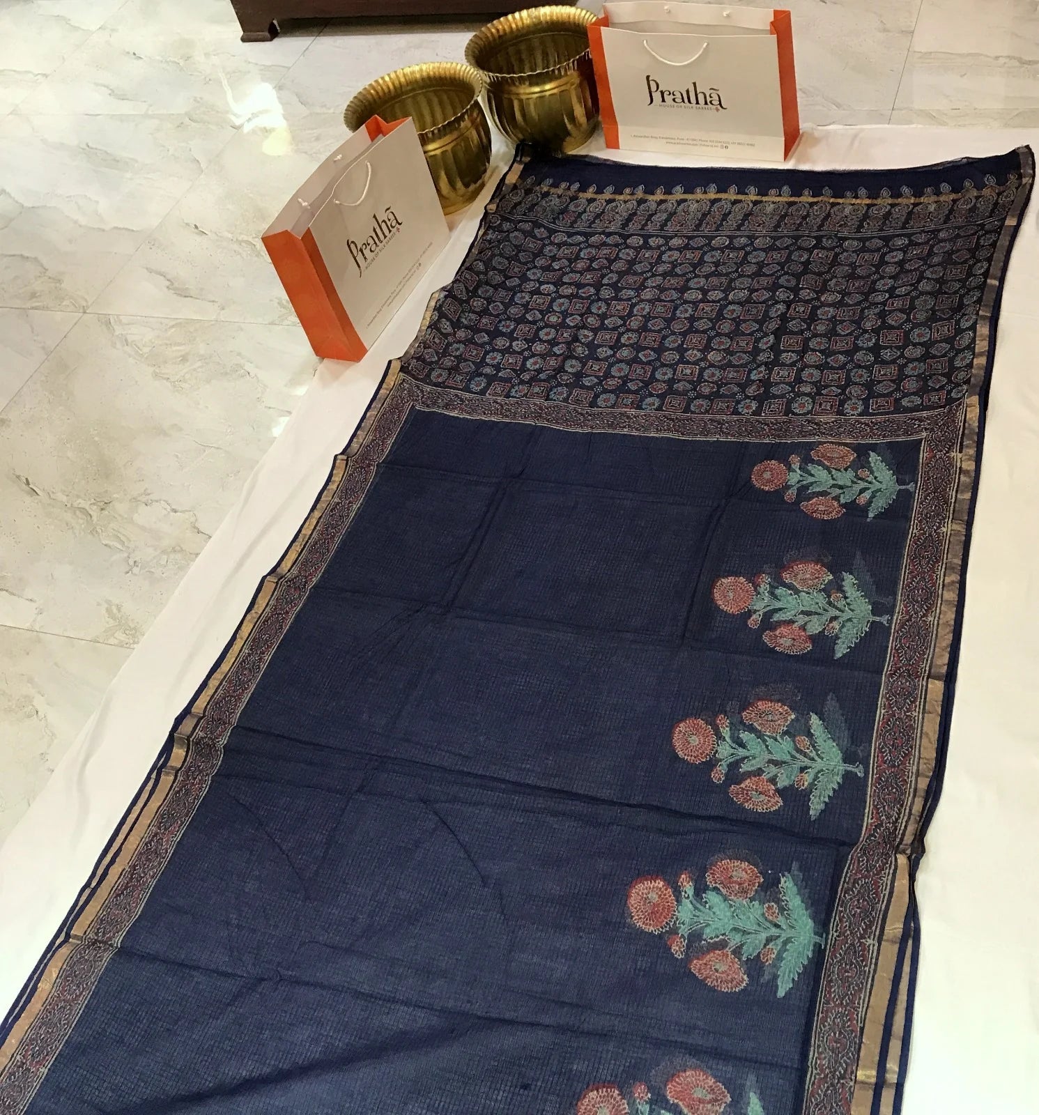 These soothing, beautiful blue pure cotton Kota Doriya Sarees come in an unique pattern of big motif and is like a super net soft cotton fabric, they are lightweight and easy to drape, a perfect pick for casual, summer and get togethers!