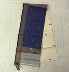 Blouse colour: Contrast( Blue with golden zari border and saree comes along with tassels)