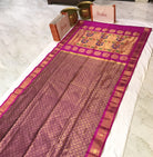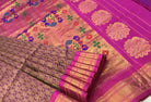 A very beautiful shade of magenta-purple Brocade Paithani with its pink coloured zari border looks awesome! This bridal weave is all set to steal hearts. The fresh colour, traditional border and a beautiful traditional peacock Paithani pallu stay true to the Paithani weaving culture! This saree will surely make your special moments even more special!
