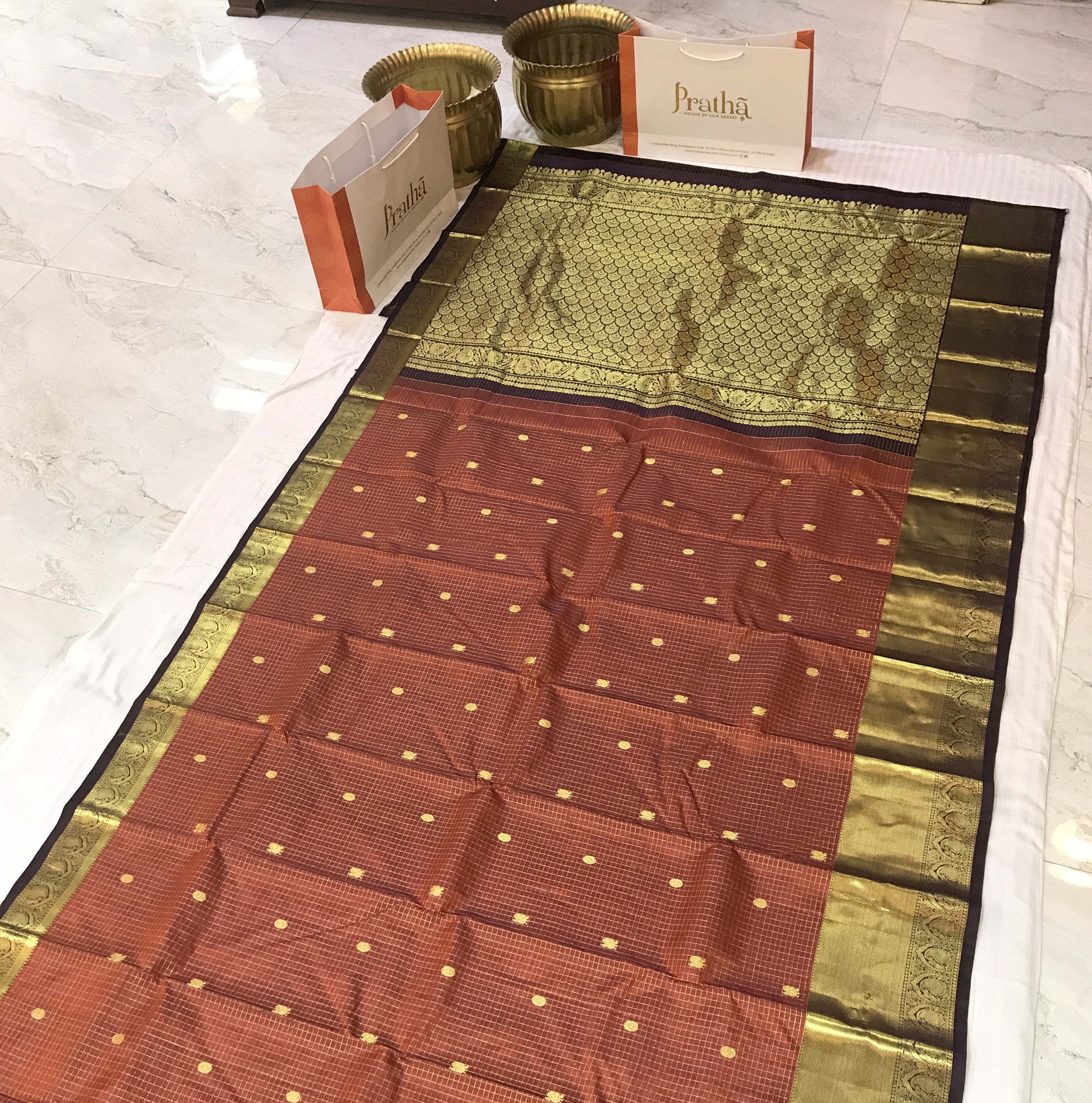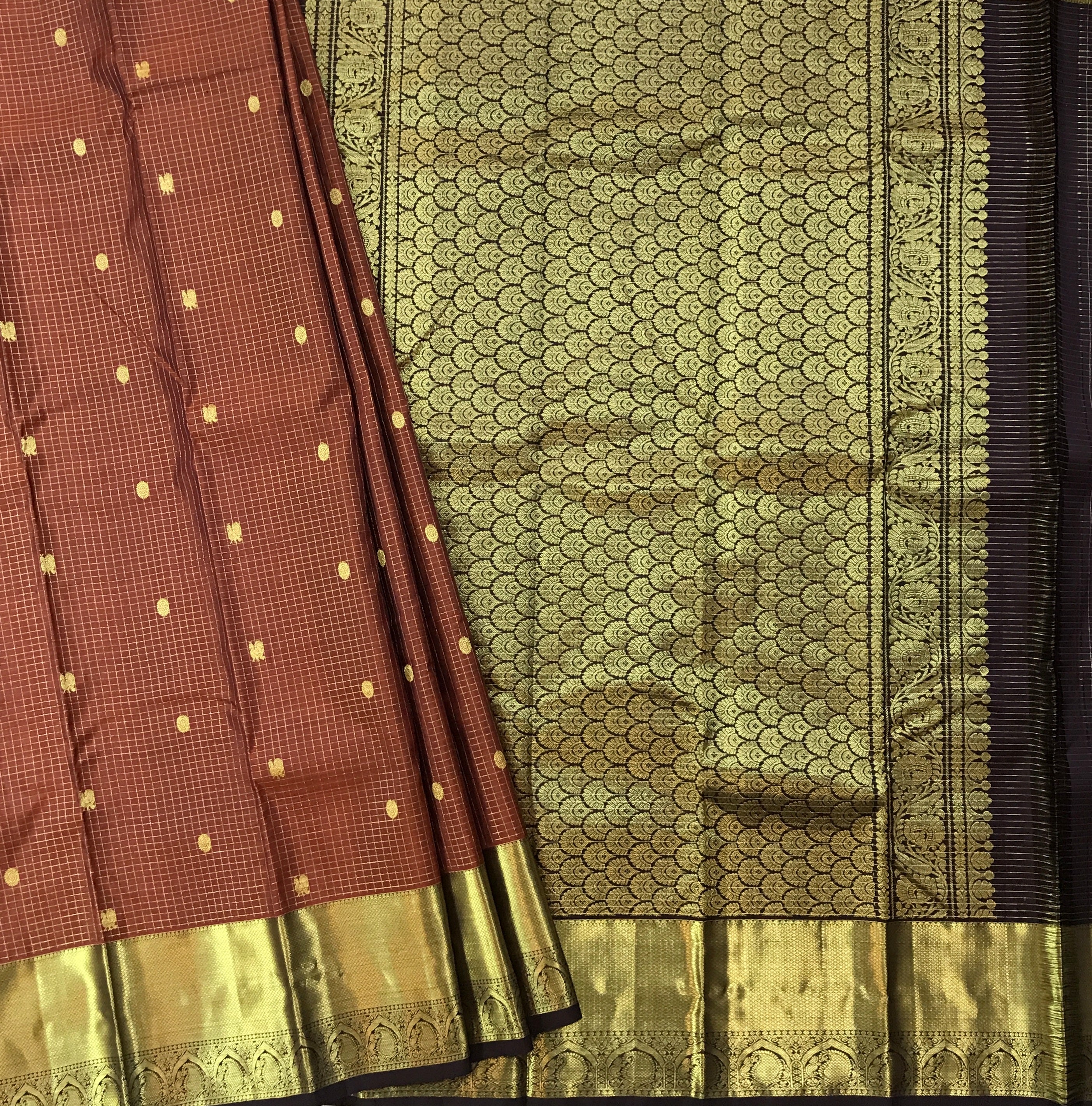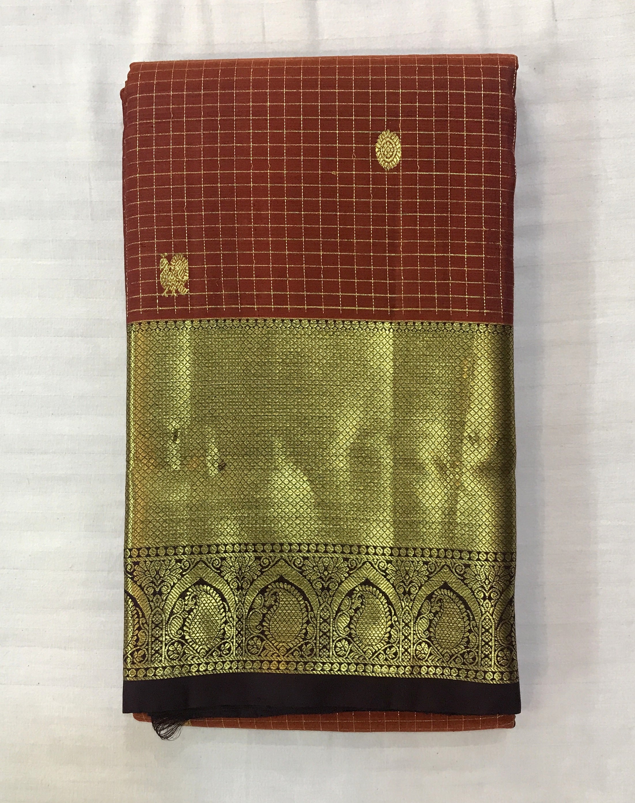 Blouse Color: Contrast ( Grey zari checks with a zari border )