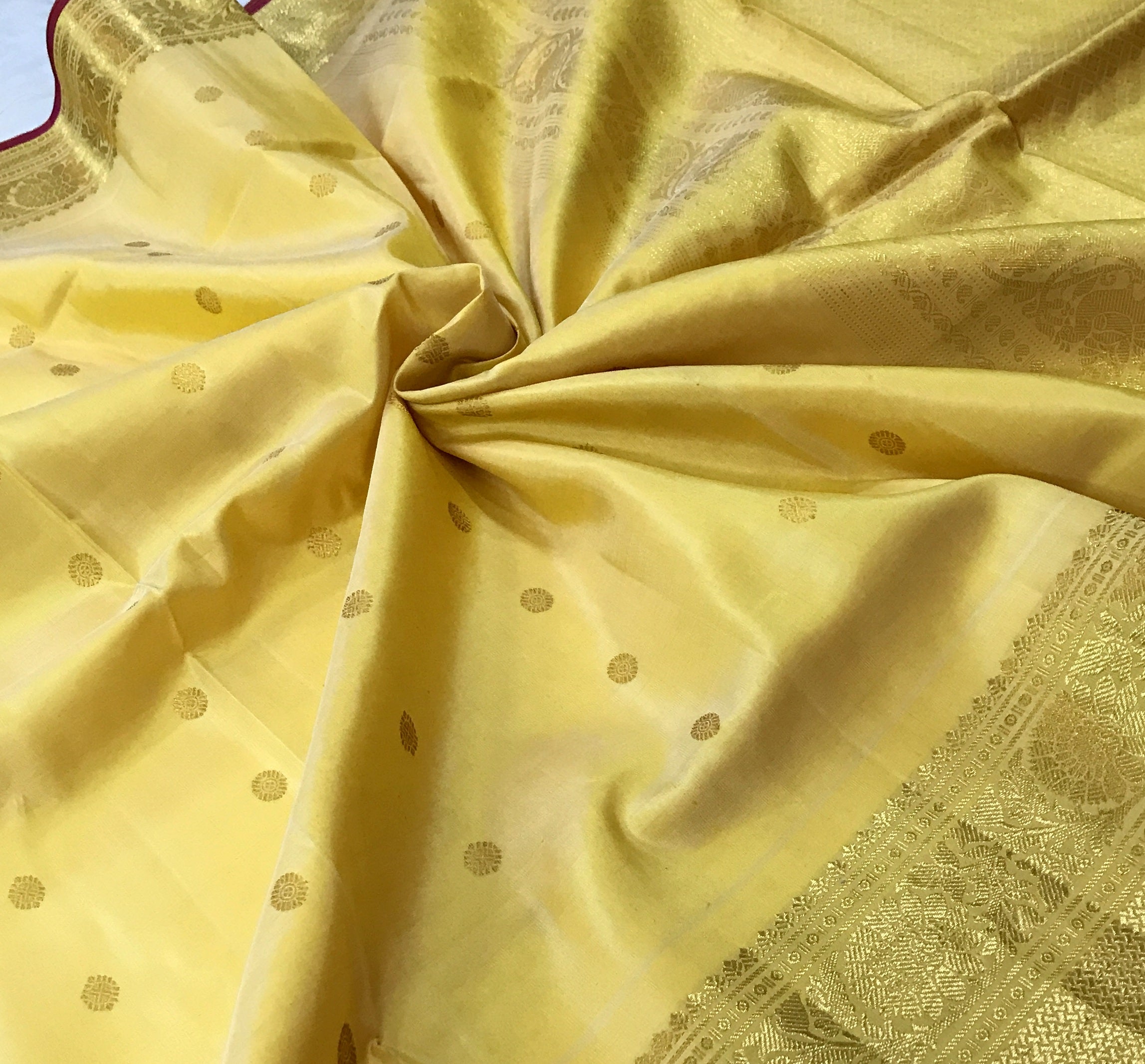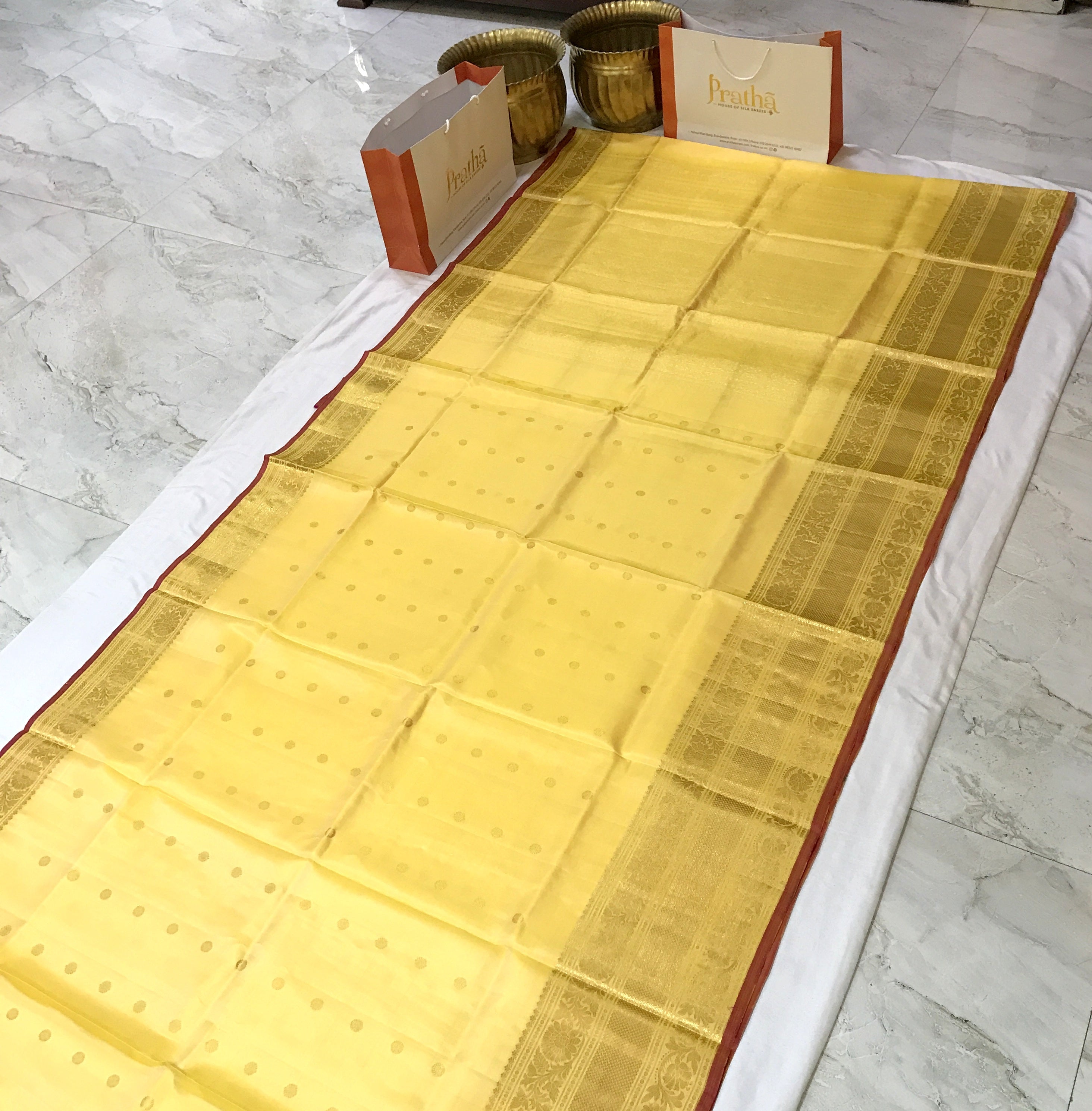Blouse Colour : Self ( Yellow colour with zari border)