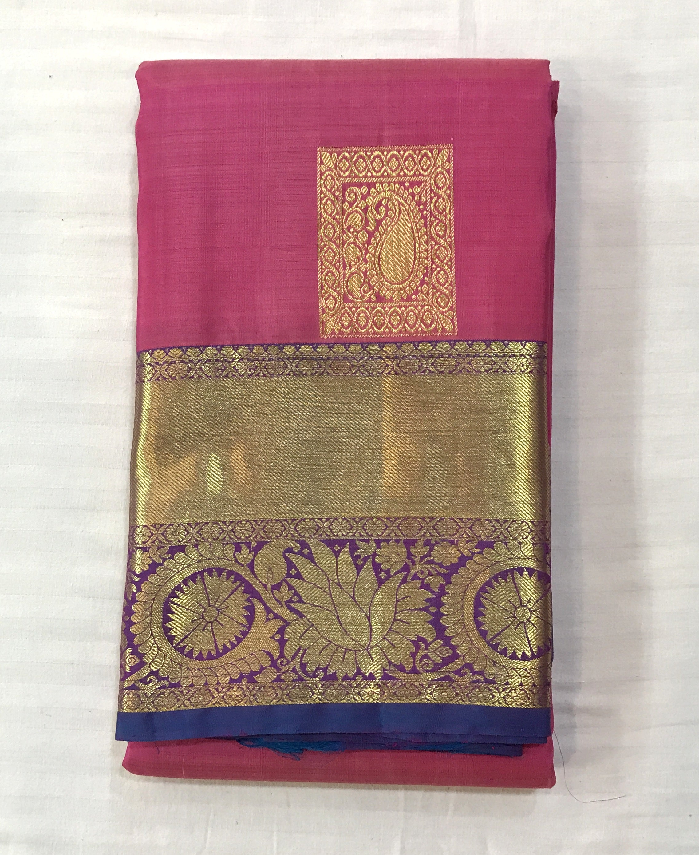 This phenomenal shade of pink pure silk handwoven Kanjeevaram, this one is perfectly traditional. The delicate butti designs, golden pink zari border and richly woven Pallu make this weave a classic! Thanks to its beautiful colour with the combination of gold, this Kanjeevaram will look great in the day as well as at night! Do not miss that, this saree has a very beautiful golden zari border looks outstanding when we wear.