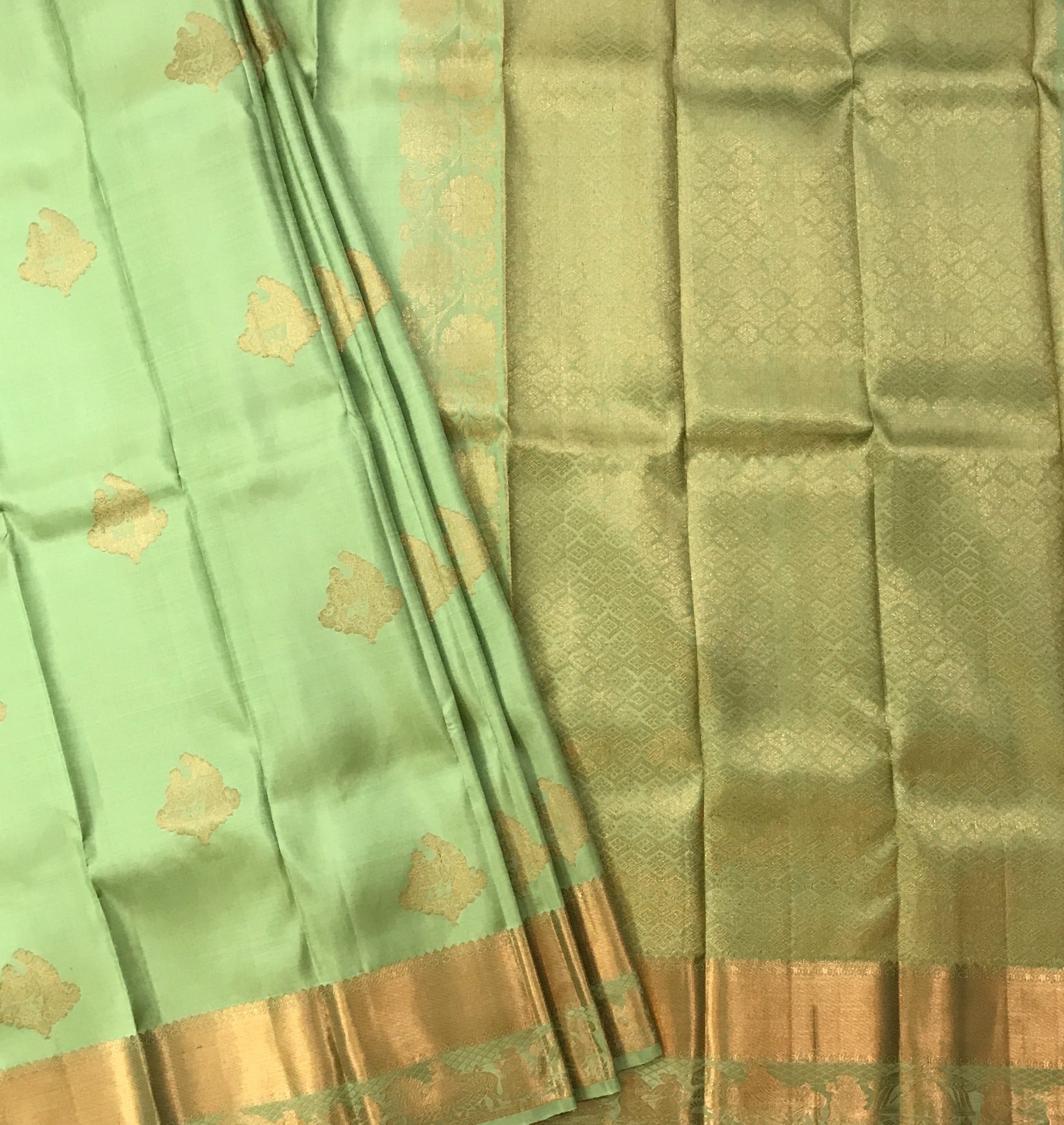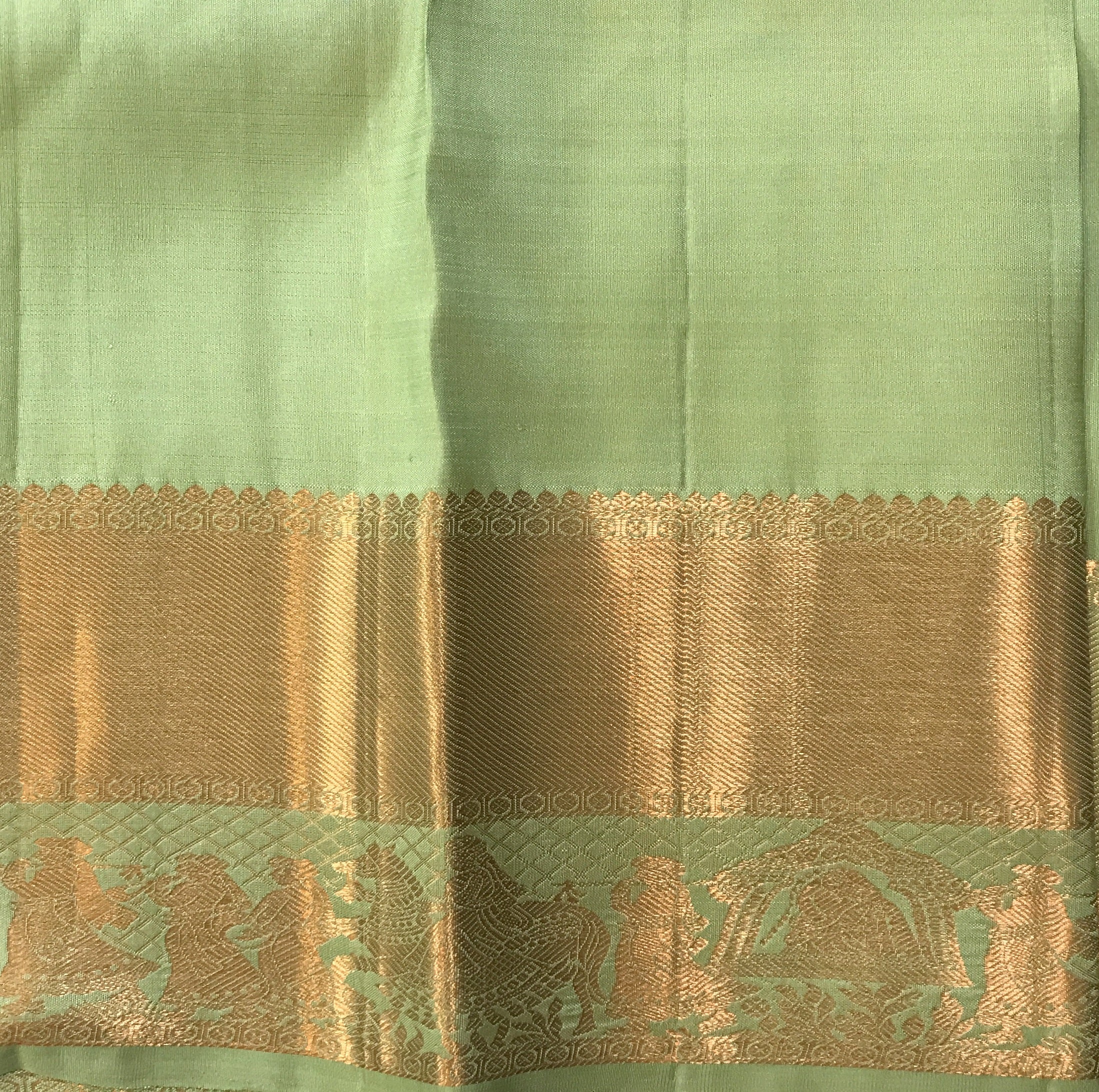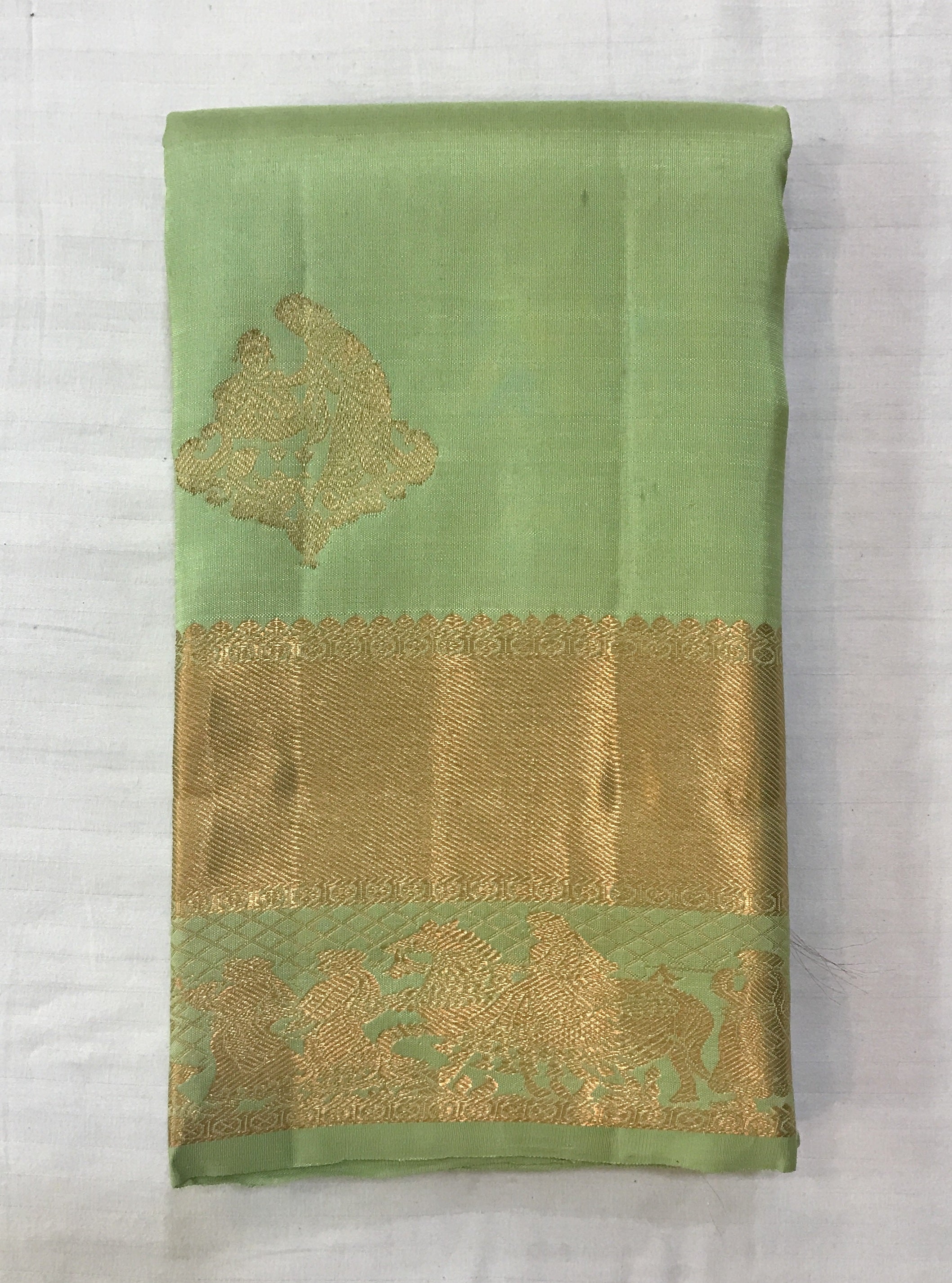 Blouse Colour: Self ( Pista-green with golden zari border)