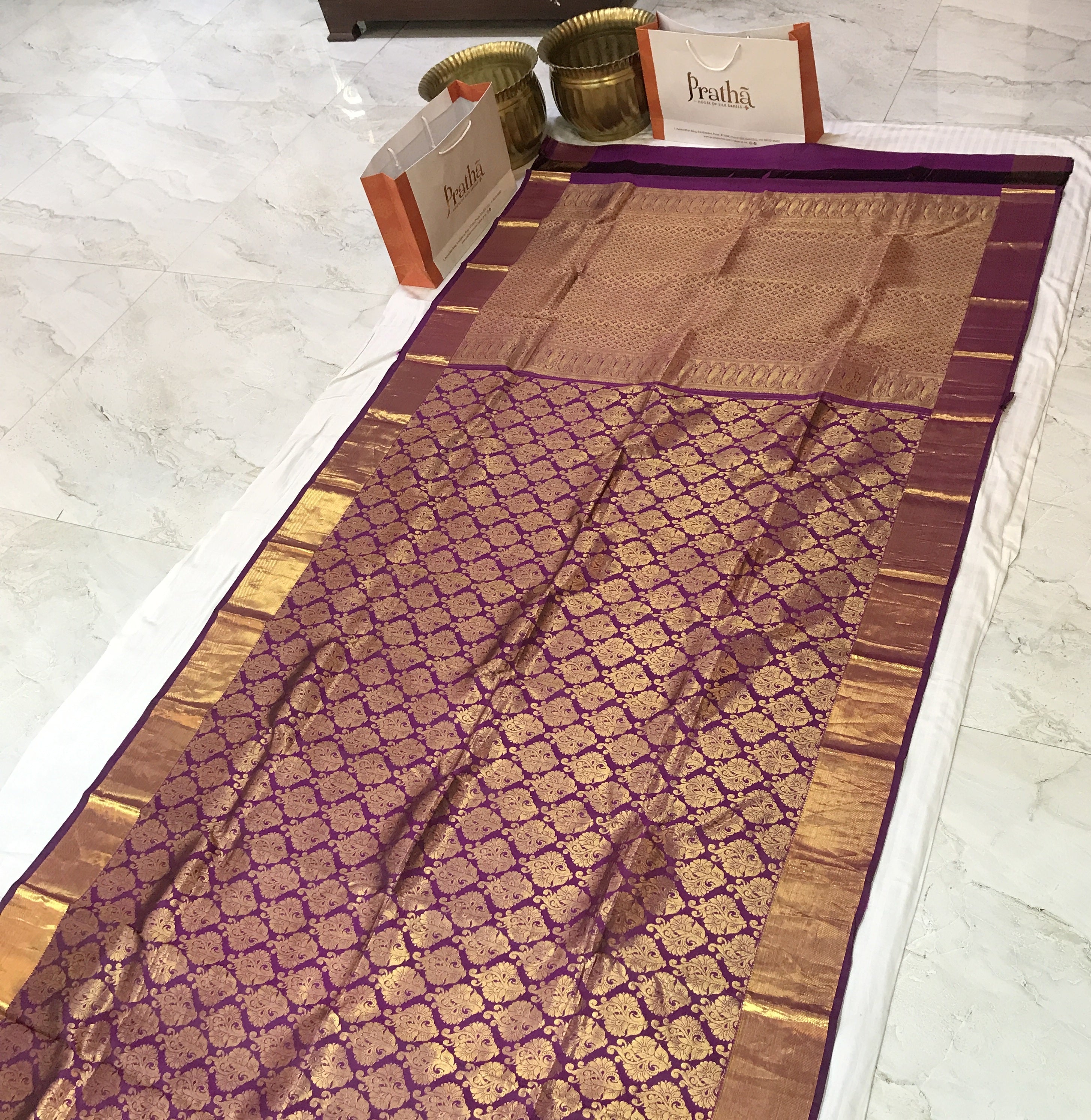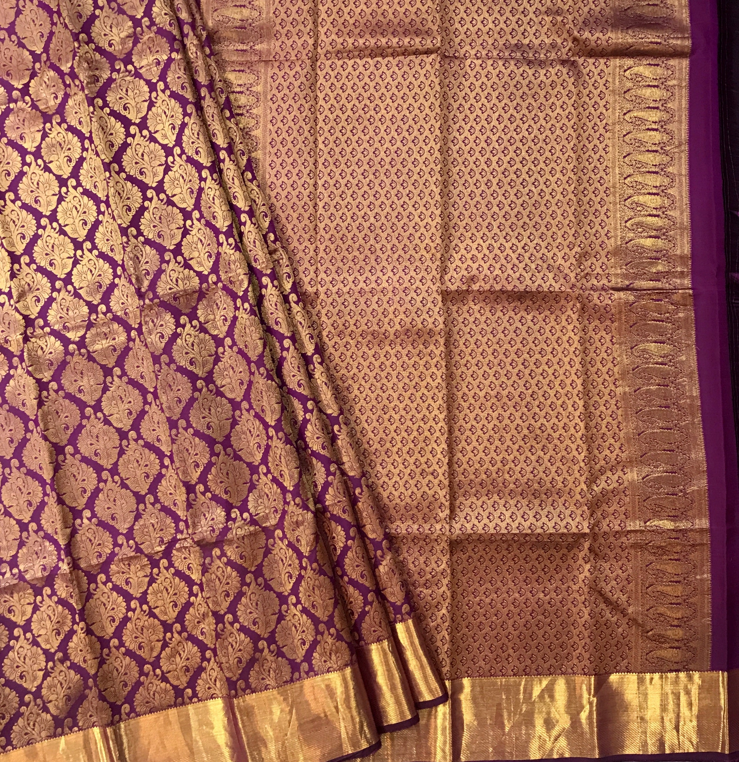 Blouse: Self ( Purple with golden zari border )
