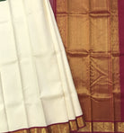 A very beautiful white plain Kanjeevaram with very beautiful golden zari border looks ravishing. May you be casual or at a party, or a small function, you can flaunt it at anywhere.