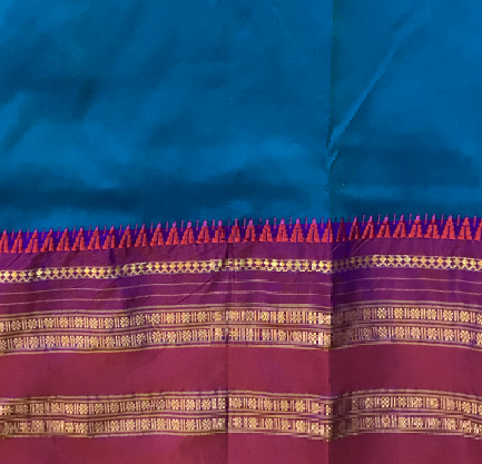 Blouse Colour: Self ( Blue with golden zari border )
